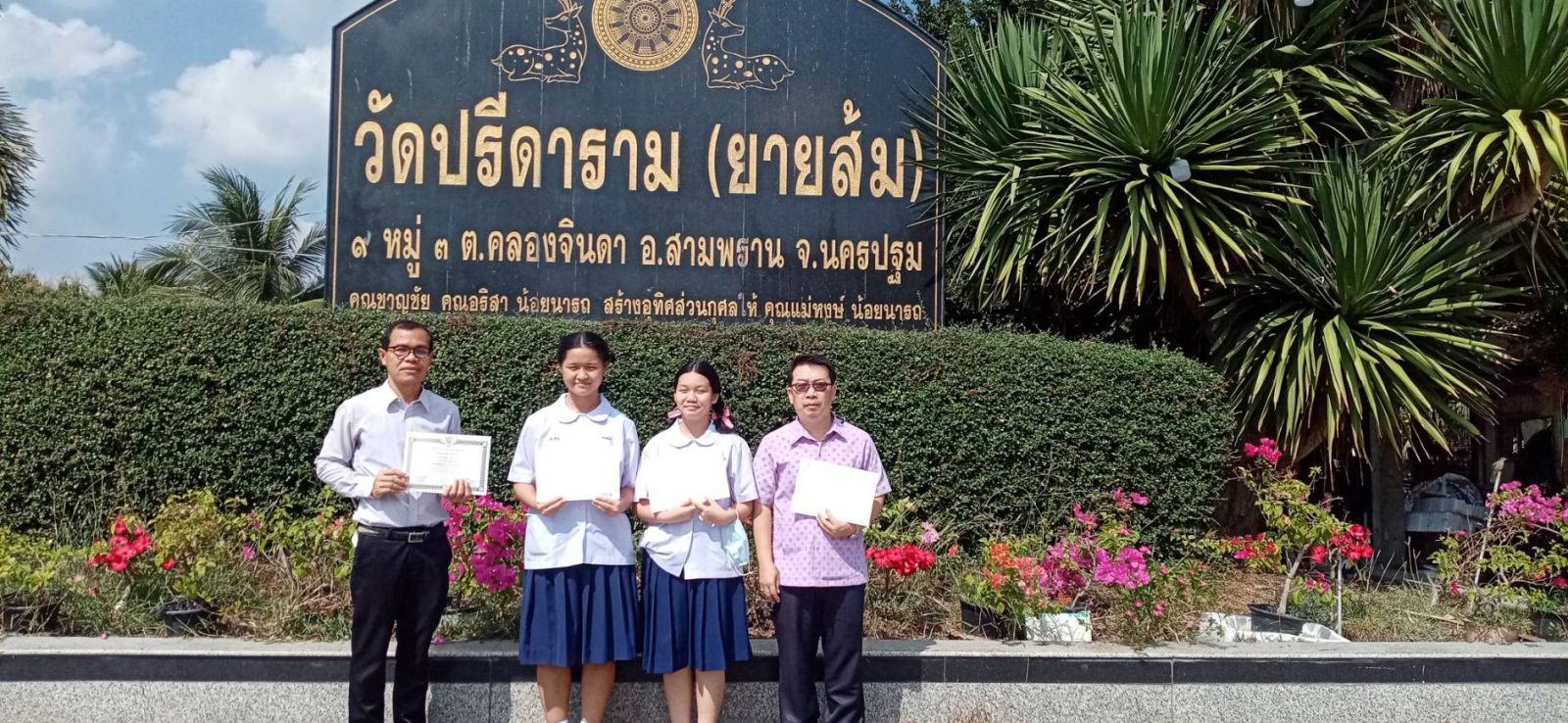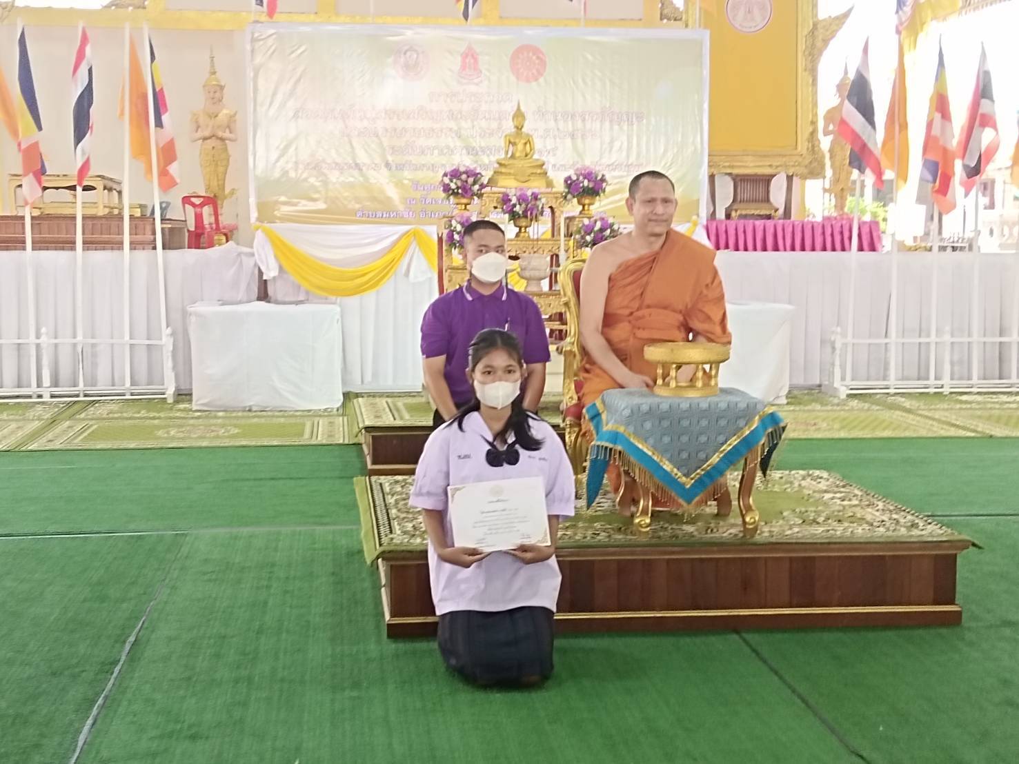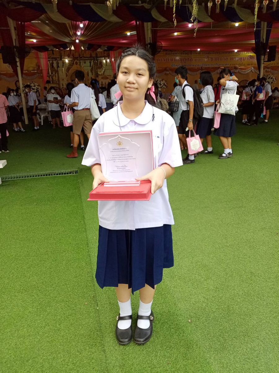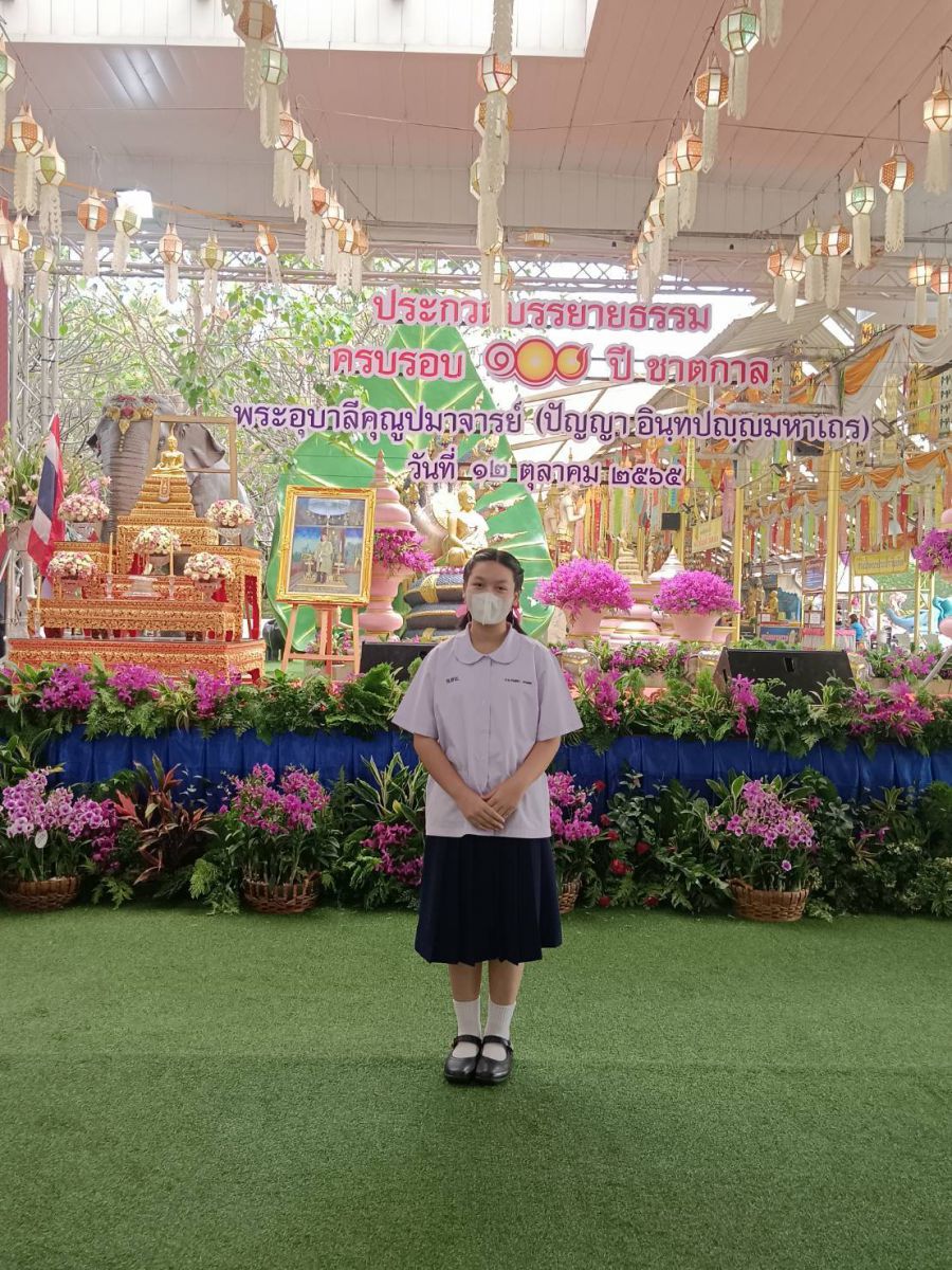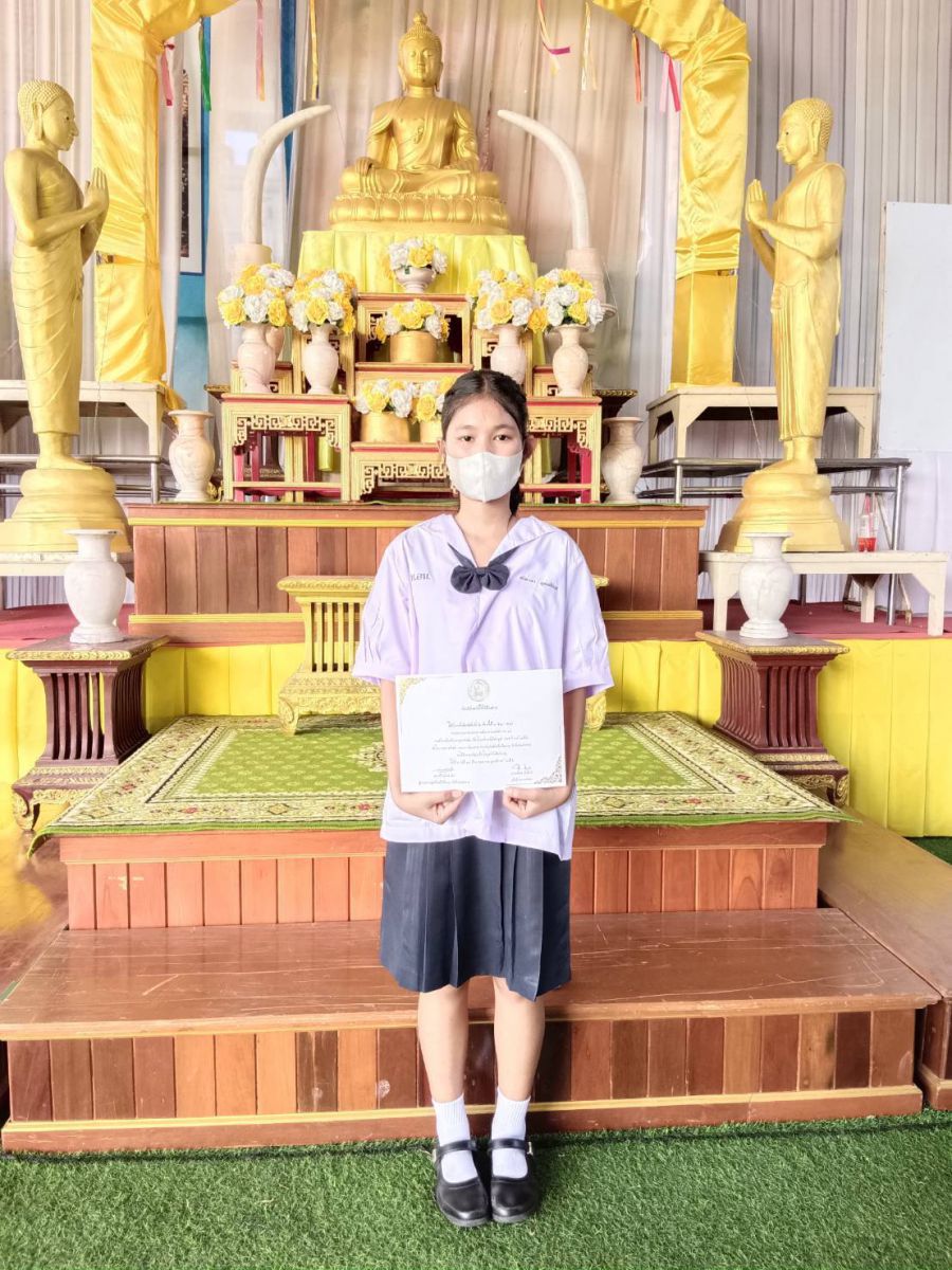ด.ญ.ชนิดาภา อุดมสิริเวช นักเรียนระดับมัธยมศึกษาที่ ๓ เข้าแข่งขันบรรยายธรรมระดับภาค ได้รับรางวัลชมเชย