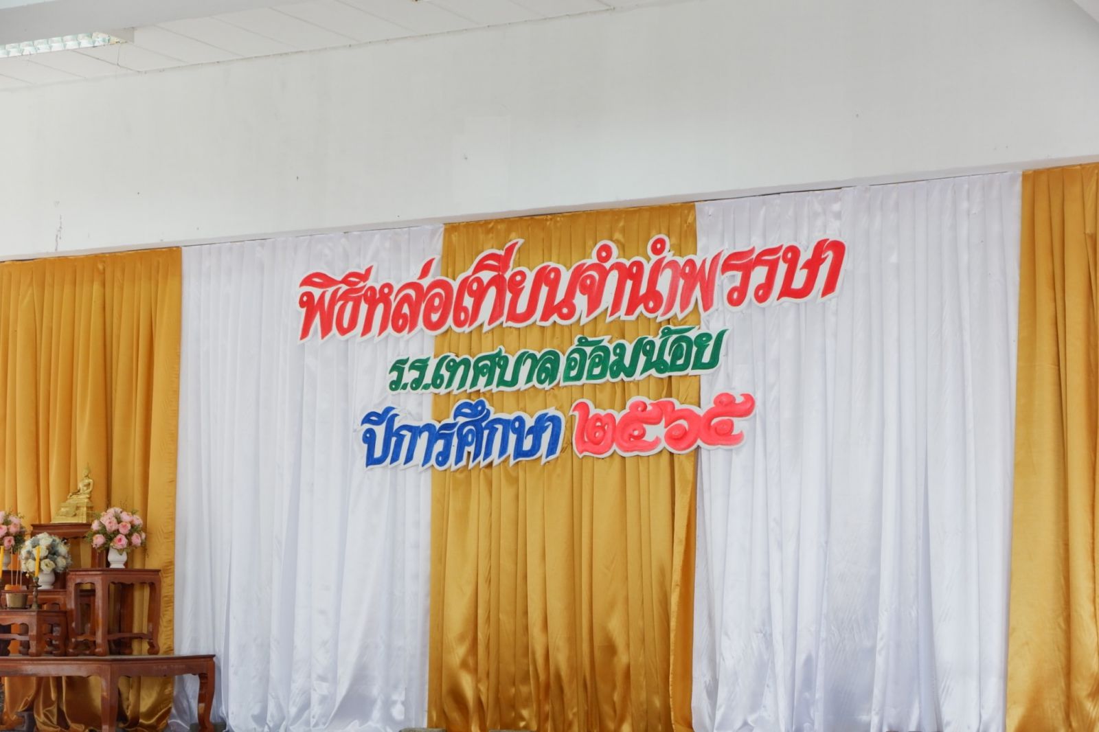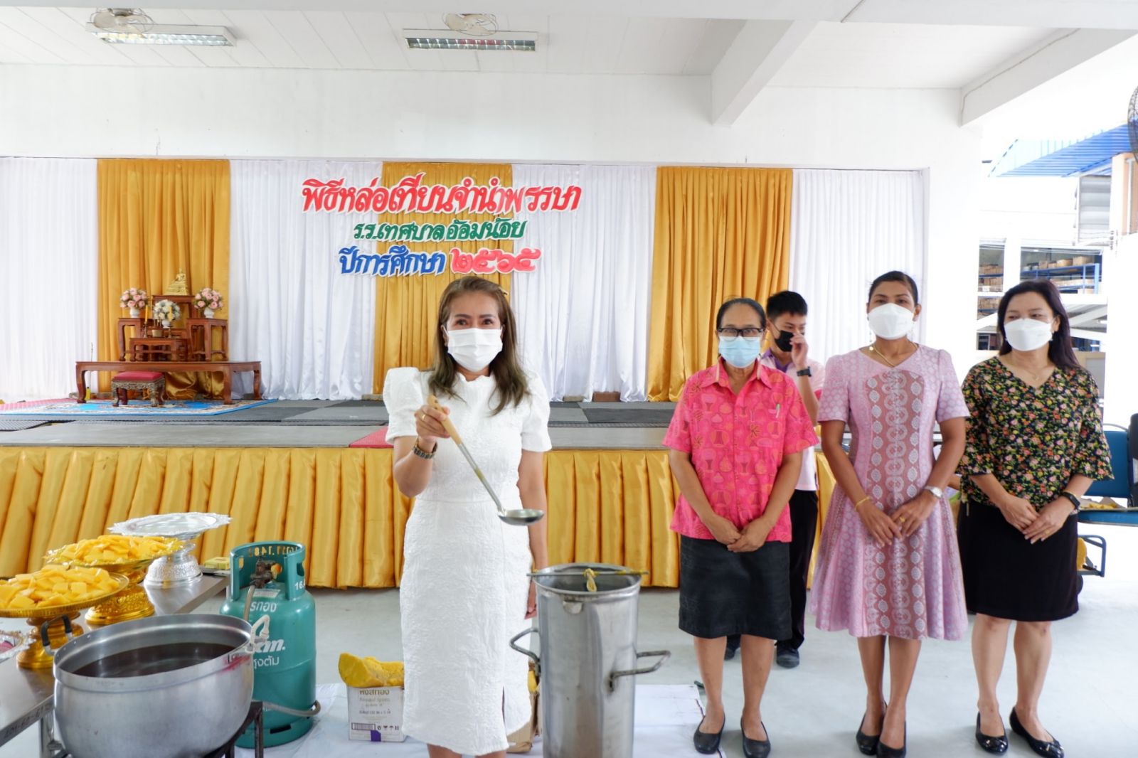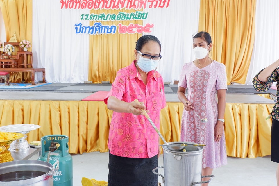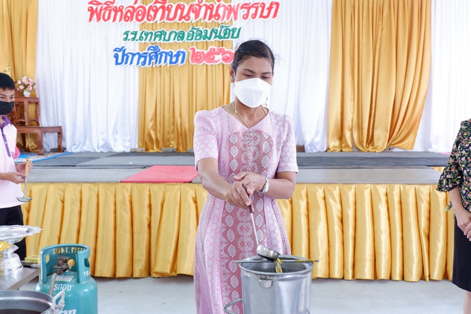 วันที่ 12 กรกฎาคม 2565 โรงเรียนเทศบาลอ้อมน้อย จัดกิจกรรมหล่อเทียนพรรษา เพื่อถวายเนื่องในวันอาสาฬหบูชาและวันเข้าพรรษา โดย นางสาวบุษยพรรณ์ แสงไชยพัฒน์ ผู้อำนวยการสถานศึกษา เป็นประธานในพิธีเปิดกิจกรรมฯ เพื่อส่งเสริมวันสำคัญทางพระพุทธศาสนา และให้นักเรียนได้เรียนรู้วิธีปฏิบัติงานสำคัญทางพระพุทธศาสนา