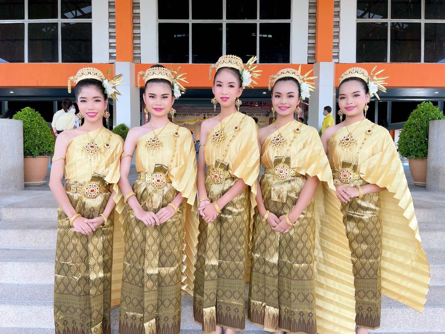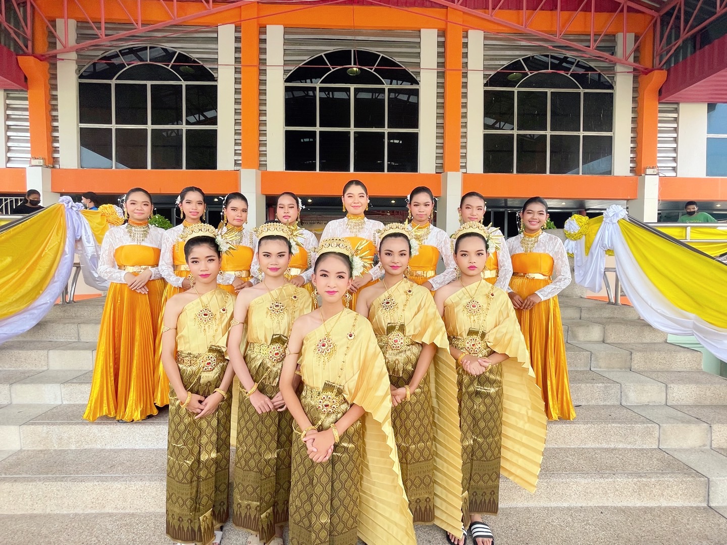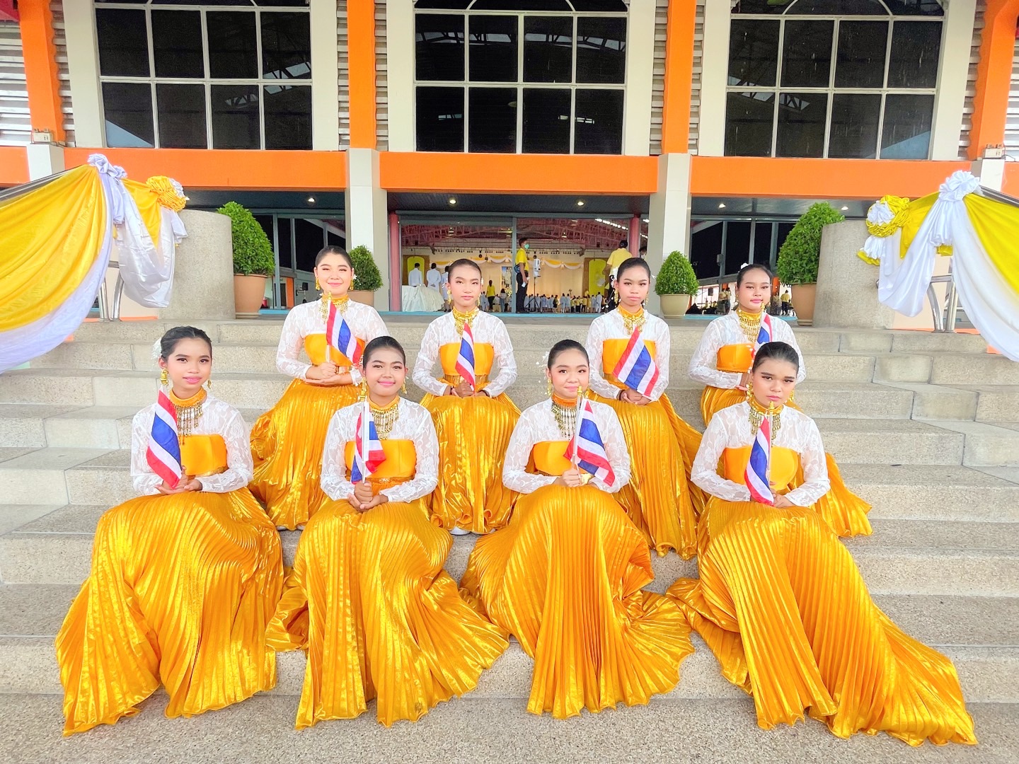 นักเรียนโรงเรียนเทศบาลอ้อมน้อย ระดับมัธยมศึกษา รำถวายพระพร เนื่องในวันเฉลิมพระชนมพรรษา ณ เทศบาลนครอ้อมน้อย วันที่ ๒๘ กรกฎาคม ๒๕๖๕