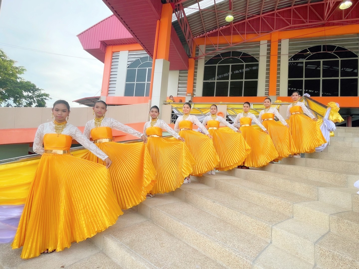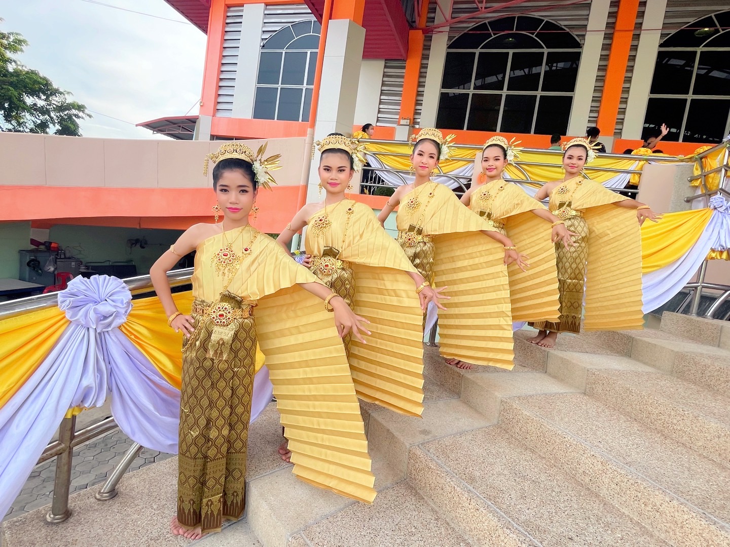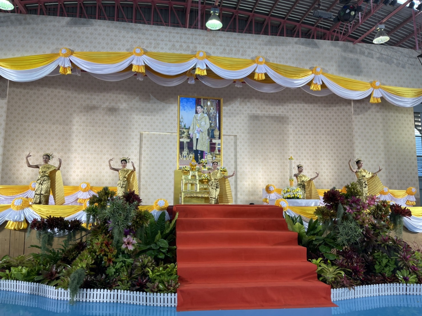 นักเรียนโรงเรียนเทศบาลอ้อมน้อย ระดับมัธยมศึกษา รำถวายพระพร เนื่องในวันเฉลิมพระชนมพรรษา ณ เทศบาลนครอ้อมน้อย วันที่ ๒๘ กรกฎาคม ๒๕๖๕