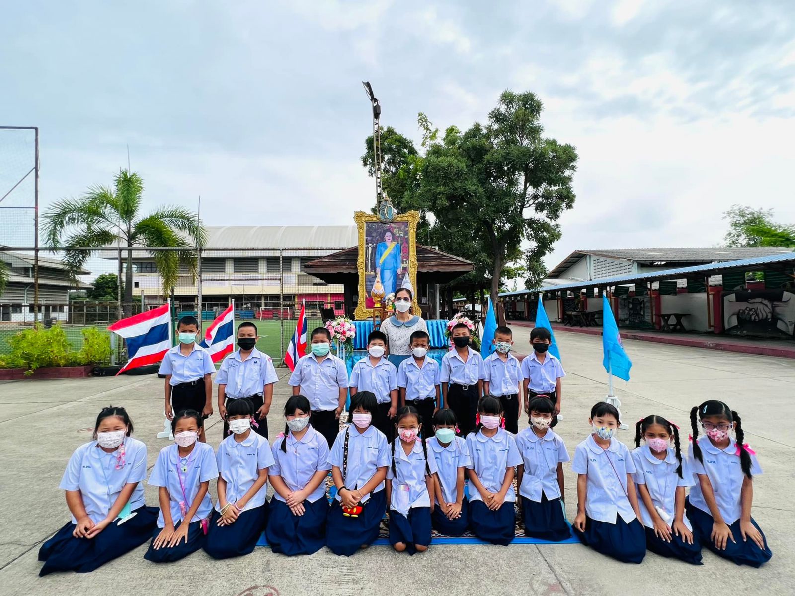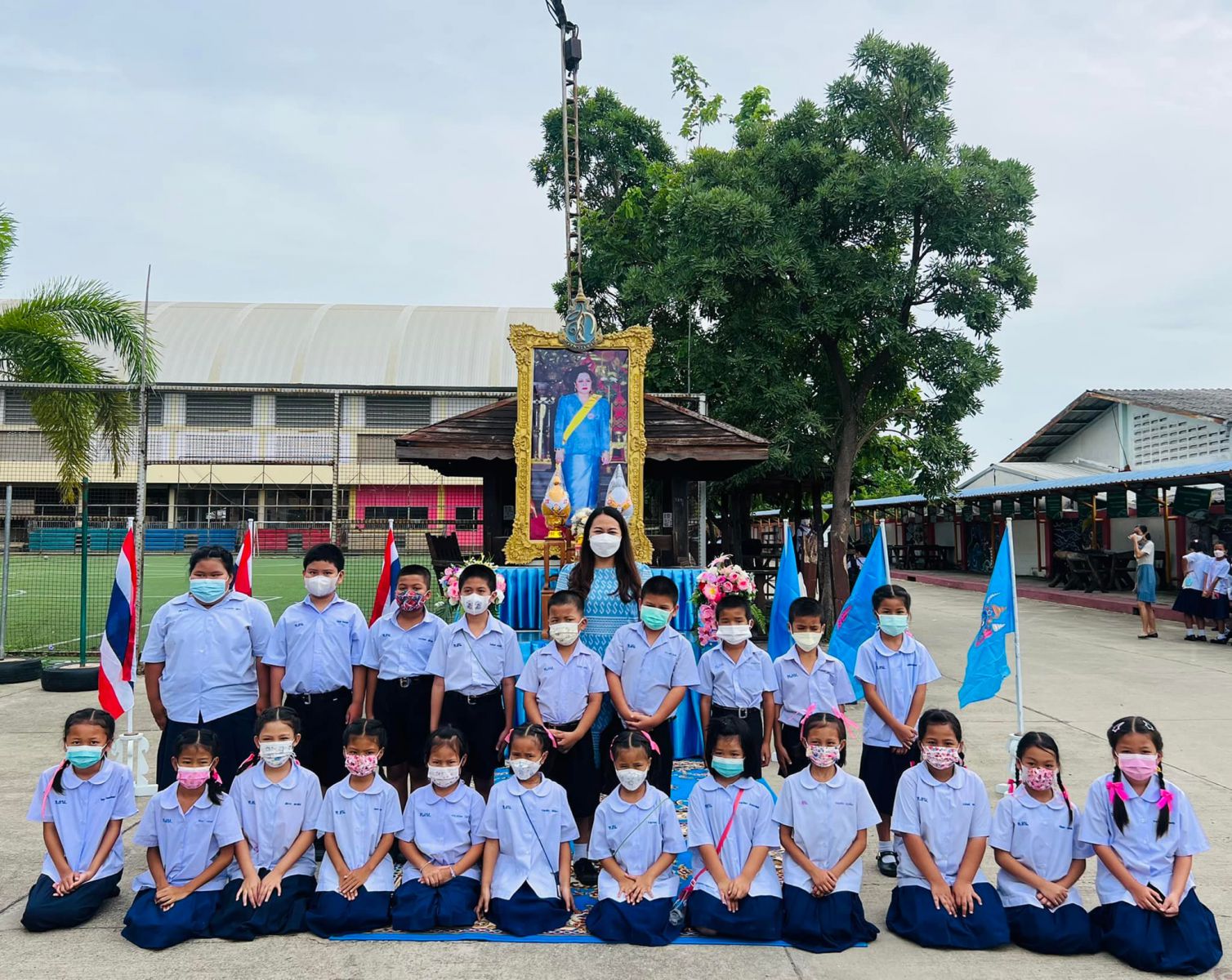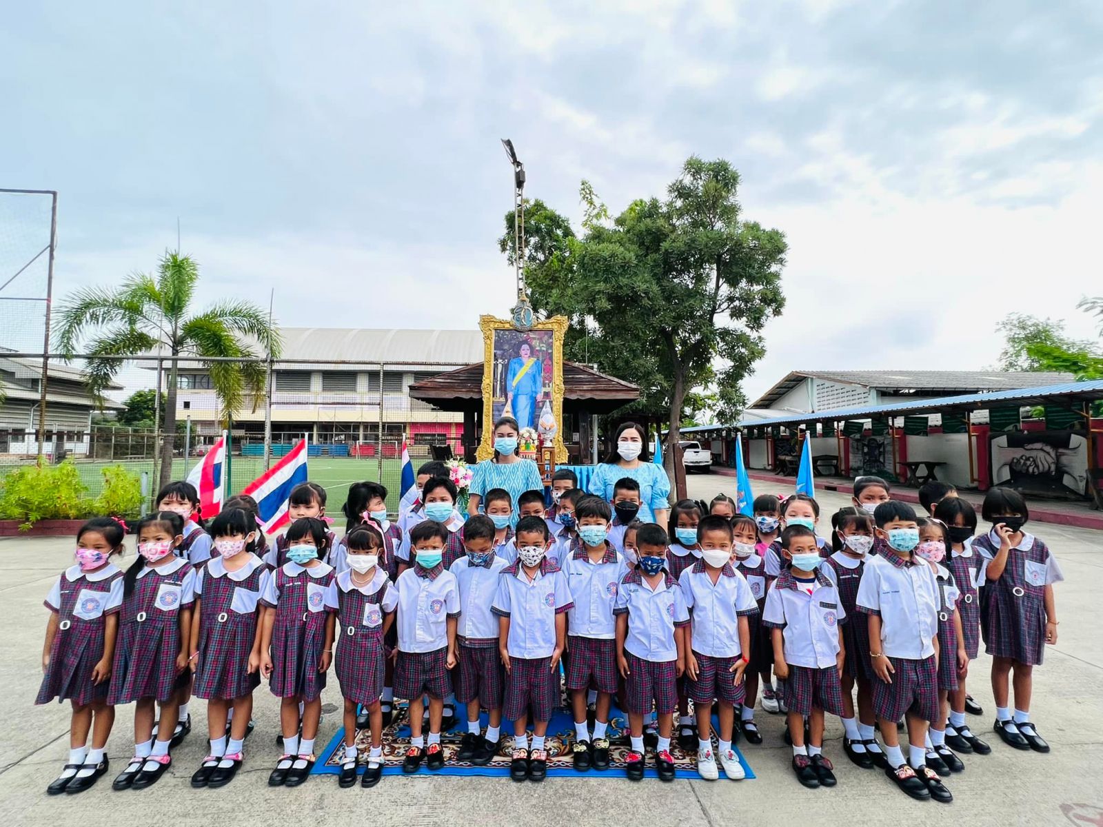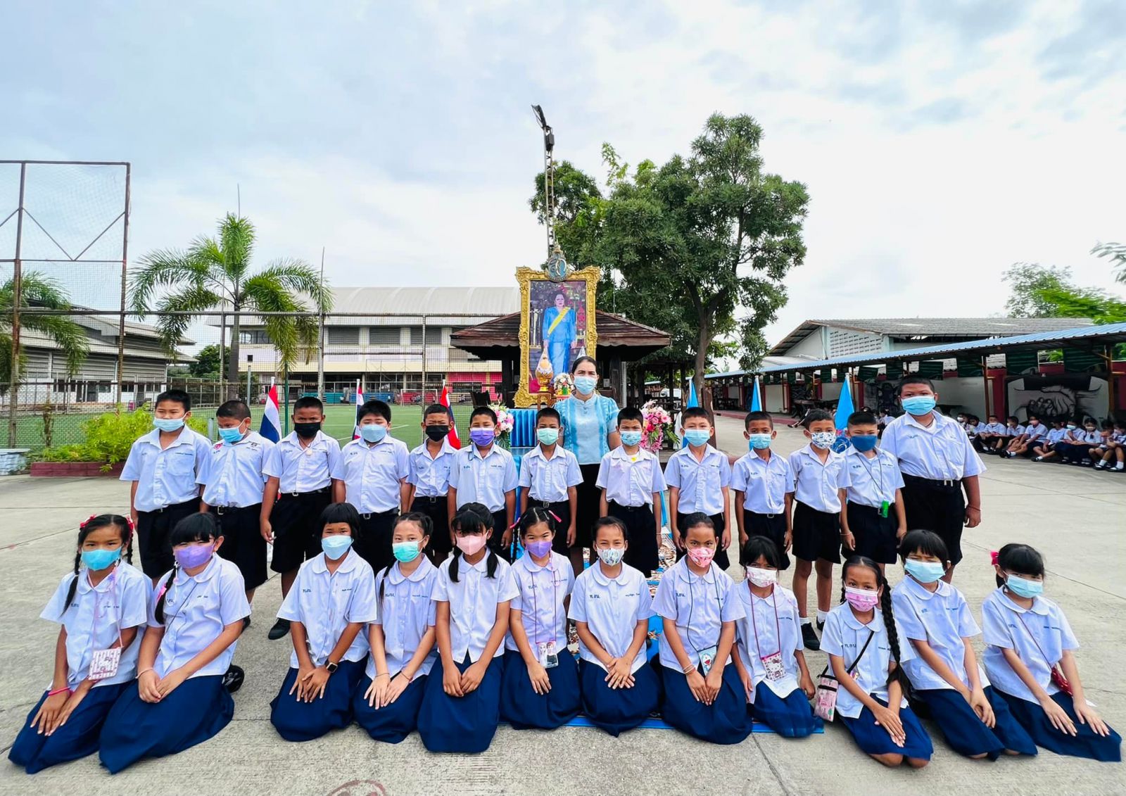 วันที่ ๑๑ สิงหาคม ๒๕๖๕ นางสาวภาวนา ทองใหม่ ตำแหน่ง ครู รักษาราชการแทน ผู้อำนวยการสถานศึกษา โรงเรียนเทศบาลอ้อมน้อย คณะครู บุคลากร และนักเรียน โรงเรียนเทศบาลอ้อมน้อย ร่วมถวายพระพรชัยมงคลแด่สมเด็จพระนางเจ้าสิริกิติ์ พระบรมราชินีนาถ พระบรมราชชนนีพันปีหลวง เนื่องในวโรกาสวันเฉลิมพระชนมพรรษา ๑๒ สิงหาคม ๒๕๖๕