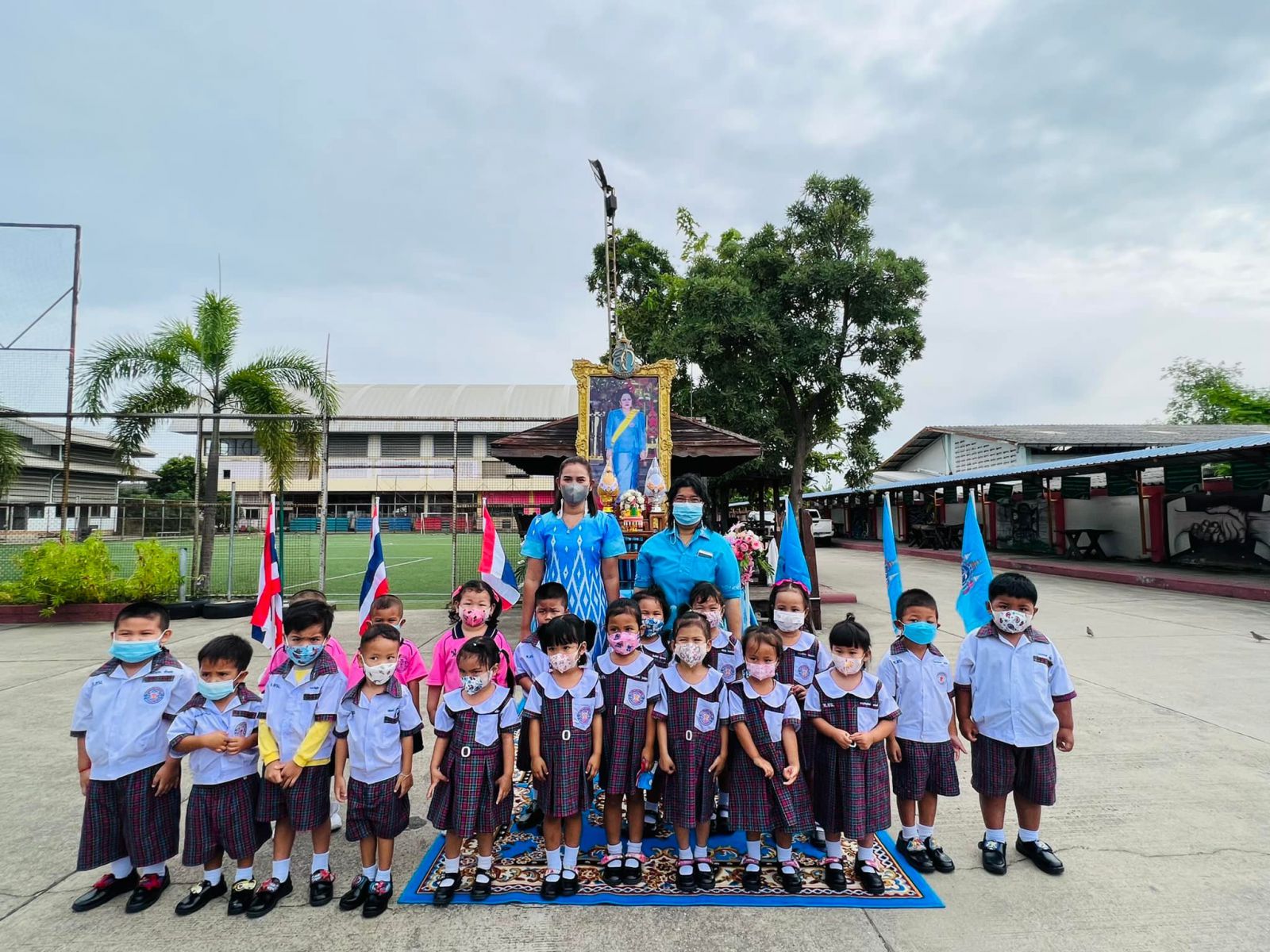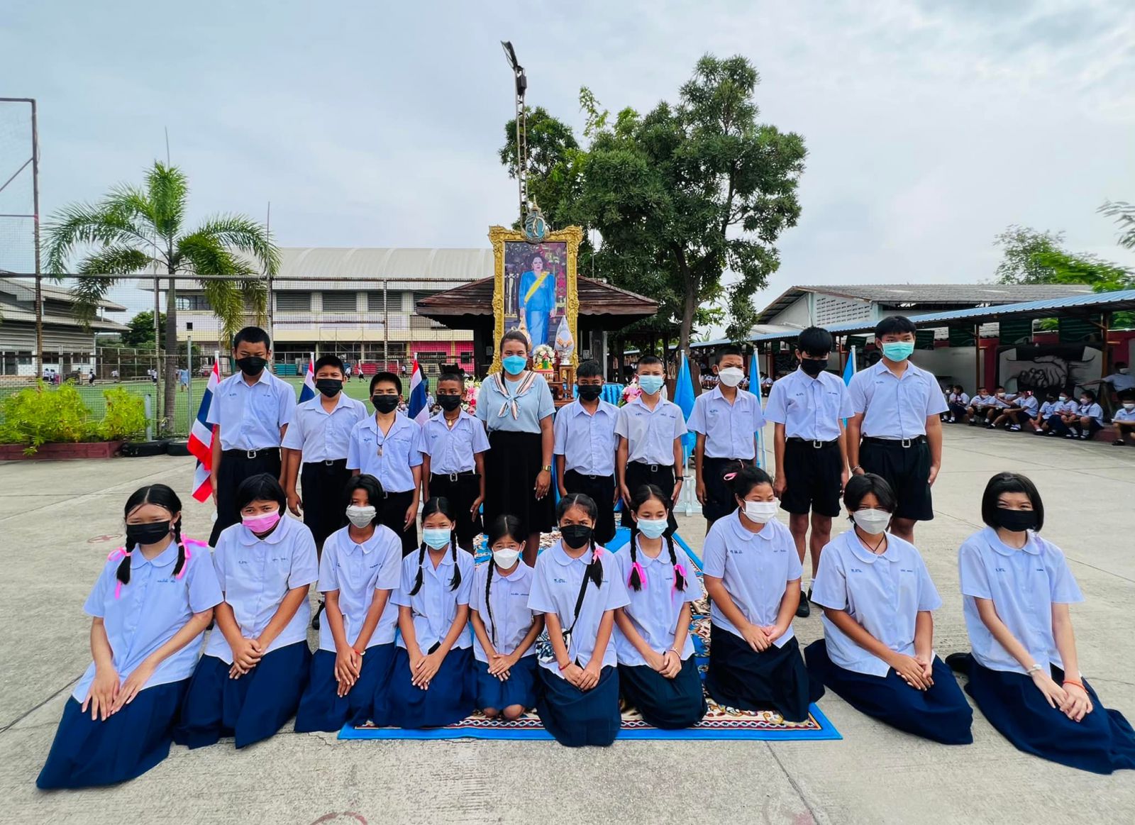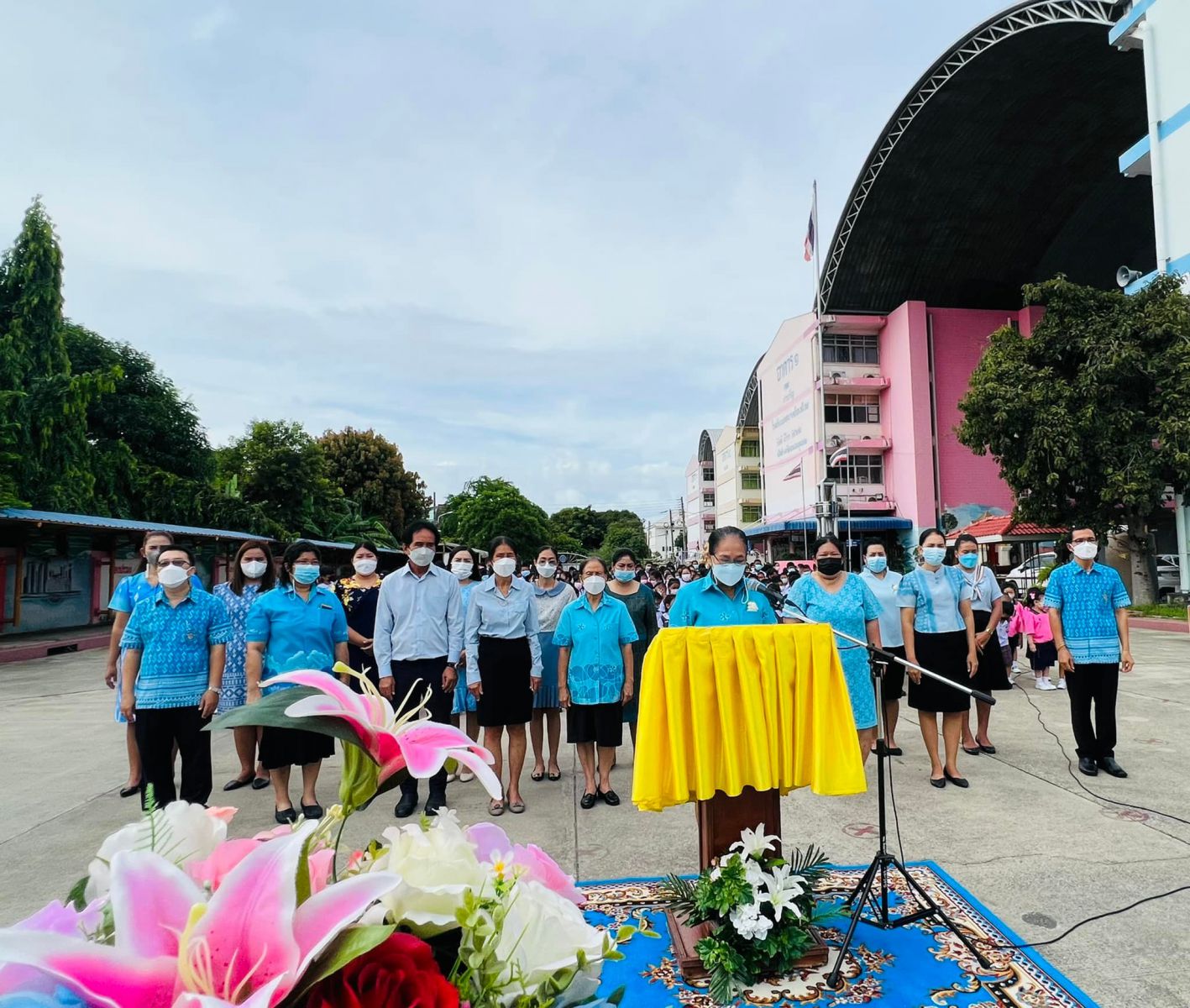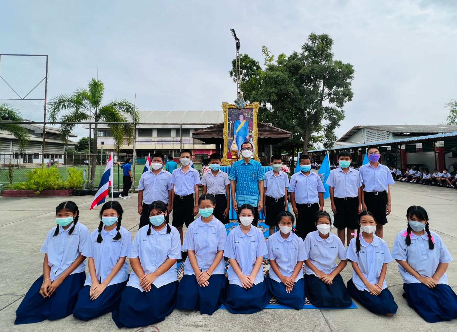 วันที่ ๑๑ สิงหาคม ๒๕๖๕ นางสาวภาวนา ทองใหม่ ตำแหน่ง ครู รักษาราชการแทน ผู้อำนวยการสถานศึกษา โรงเรียนเทศบาลอ้อมน้อย คณะครู บุคลากร และนักเรียน โรงเรียนเทศบาลอ้อมน้อย ร่วมถวายพระพรชัยมงคลแด่สมเด็จพระนางเจ้าสิริกิติ์ พระบรมราชินีนาถ พระบรมราชชนนีพันปีหลวง เนื่องในวโรกาสวันเฉลิมพระชนมพรรษา ๑๒ สิงหาคม ๒๕๖๕