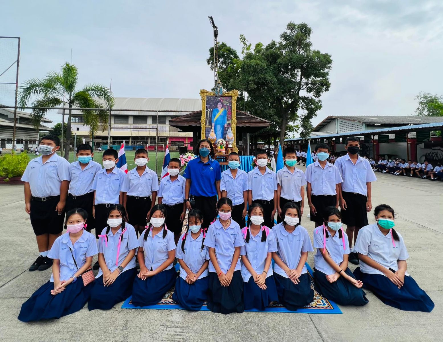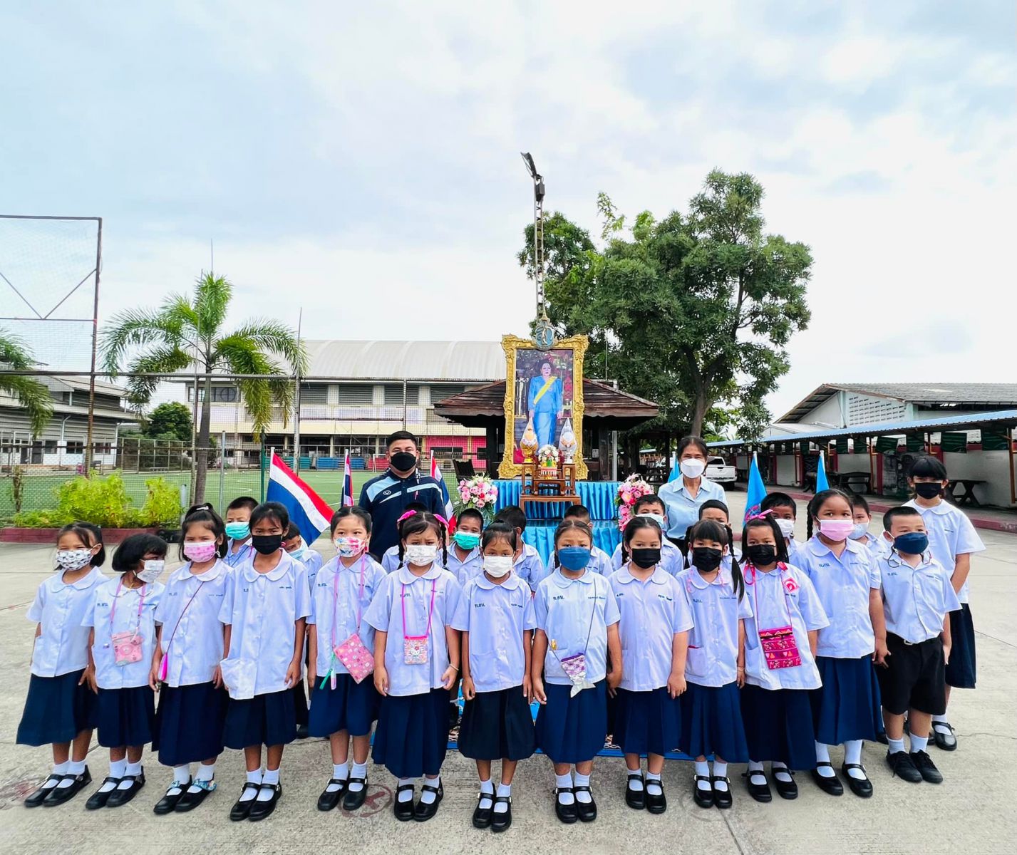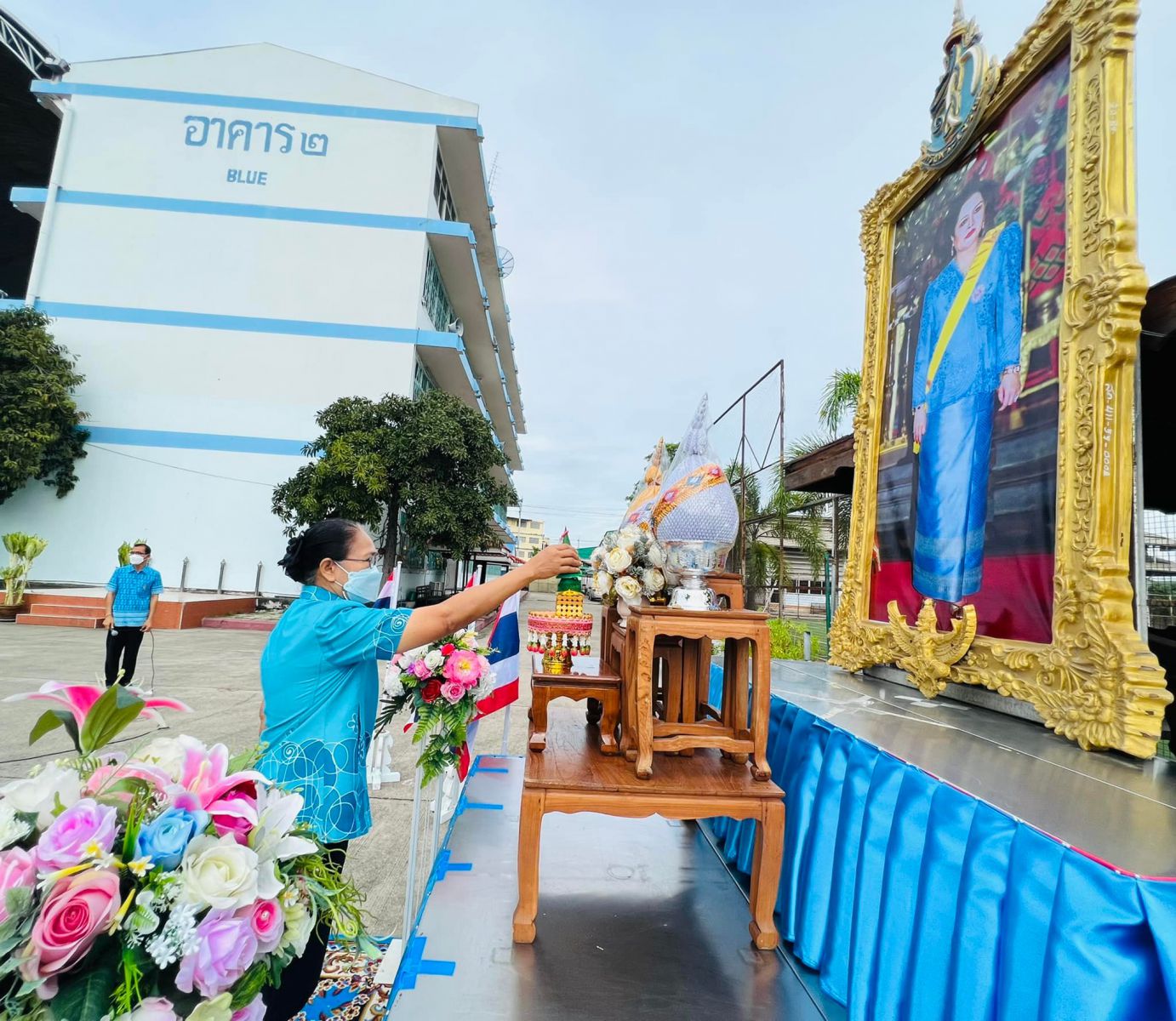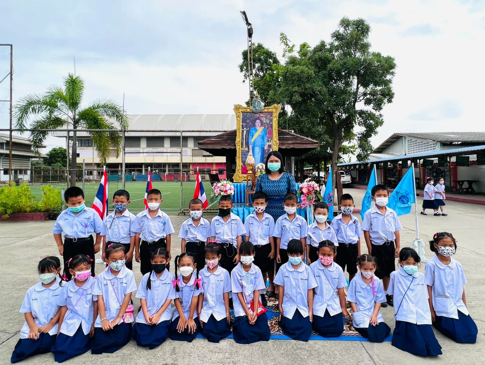 วันที่ ๑๑ สิงหาคม ๒๕๖๕ นางสาวภาวนา ทองใหม่ ตำแหน่ง ครู รักษาราชการแทน ผู้อำนวยการสถานศึกษา โรงเรียนเทศบาลอ้อมน้อย คณะครู บุคลากร และนักเรียน โรงเรียนเทศบาลอ้อมน้อย ร่วมถวายพระพรชัยมงคลแด่สมเด็จพระนางเจ้าสิริกิติ์ พระบรมราชินีนาถ พระบรมราชชนนีพันปีหลวง เนื่องในวโรกาสวันเฉลิมพระชนมพรรษา ๑๒ สิงหาคม ๒๕๖๕