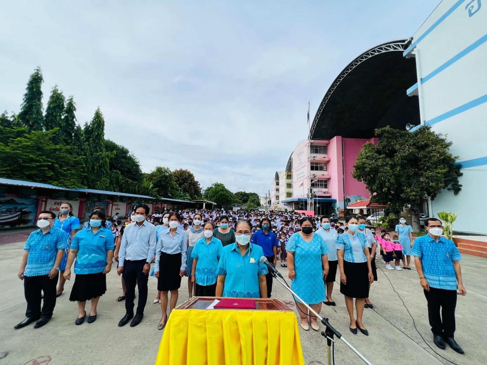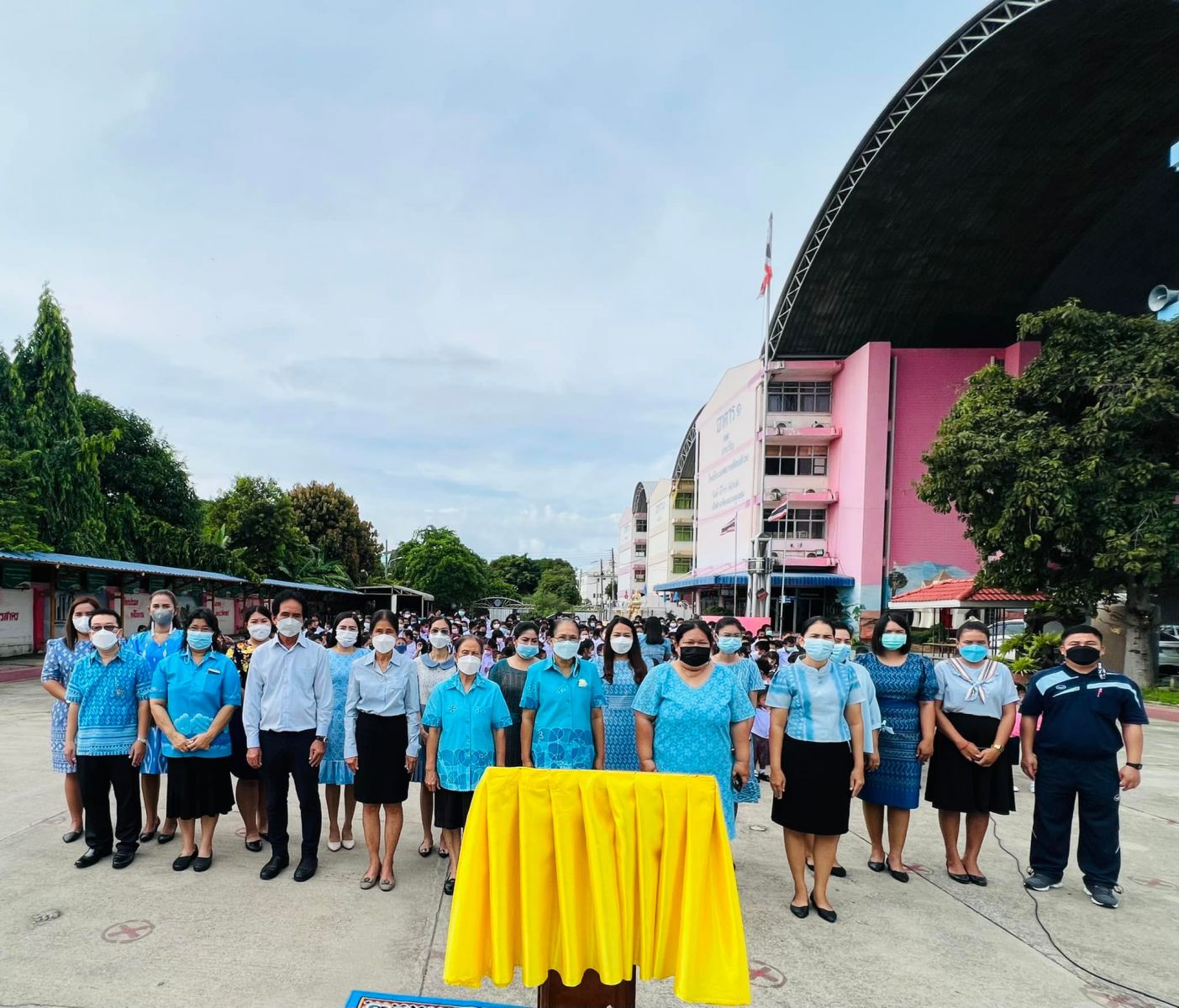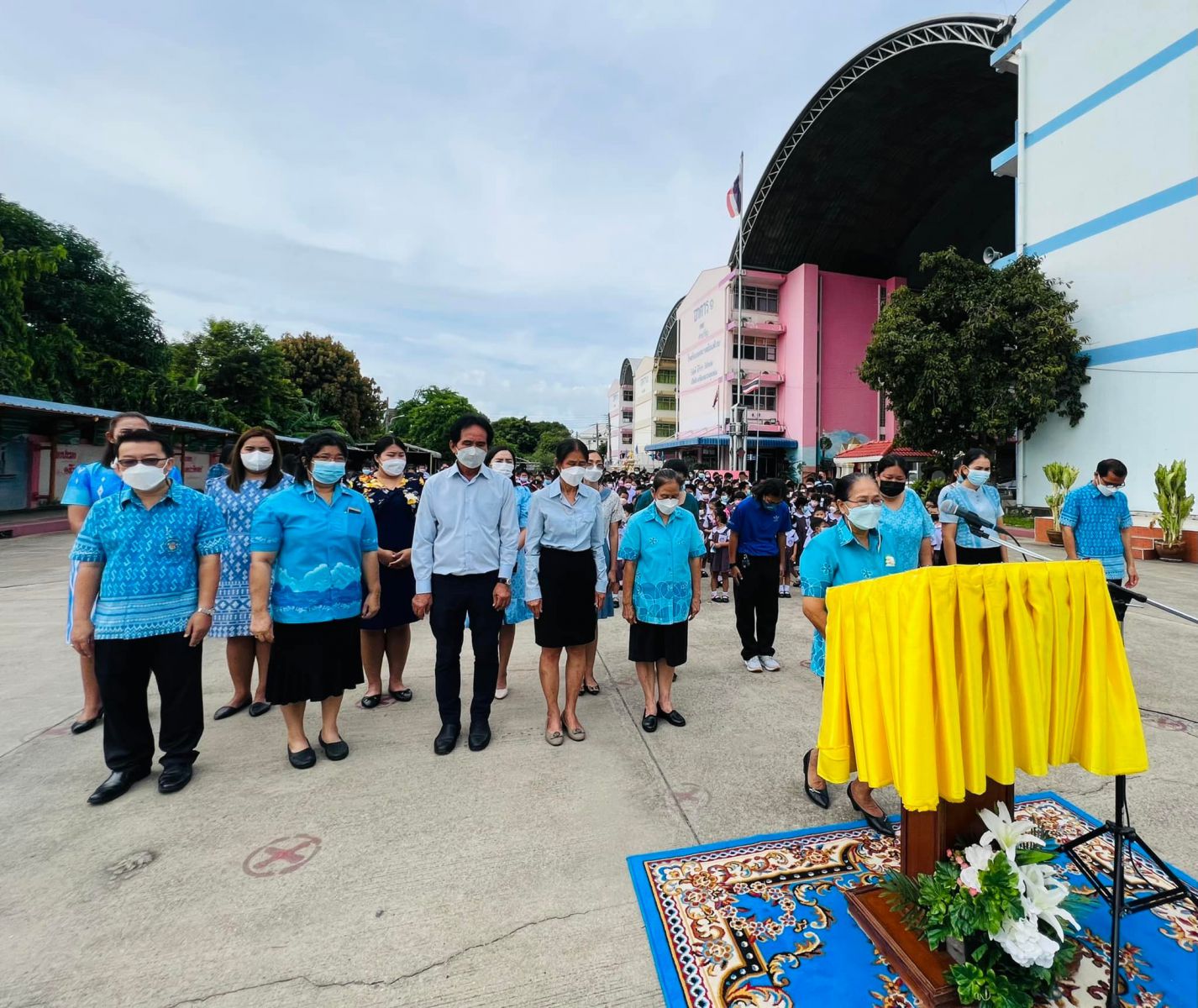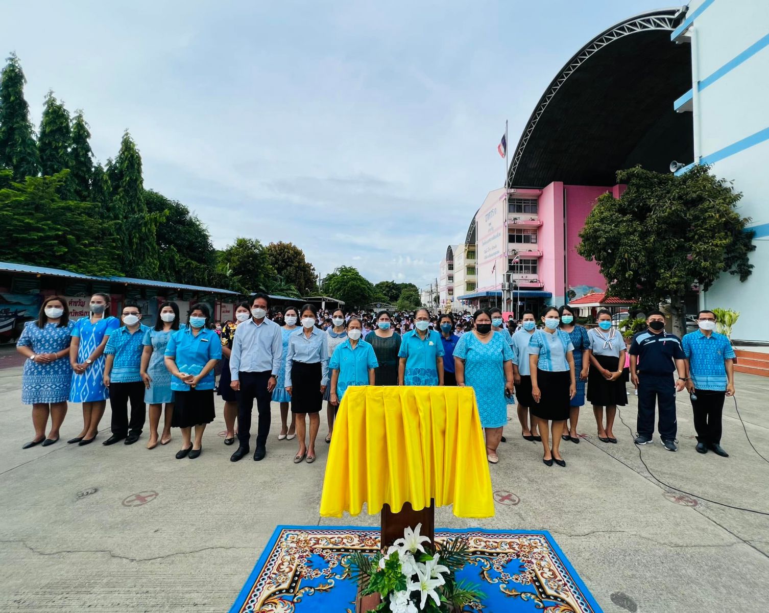 วันที่ ๑๑ สิงหาคม ๒๕๖๕ นางสาวภาวนา ทองใหม่ ตำแหน่ง ครู รักษาราชการแทน ผู้อำนวยการสถานศึกษา โรงเรียนเทศบาลอ้อมน้อย คณะครู บุคลากร และนักเรียน โรงเรียนเทศบาลอ้อมน้อย ร่วมถวายพระพรชัยมงคลแด่สมเด็จพระนางเจ้าสิริกิติ์ พระบรมราชินีนาถ พระบรมราชชนนีพันปีหลวง เนื่องในวโรกาสวันเฉลิมพระชนมพรรษา ๑๒ สิงหาคม ๒๕๖๕
