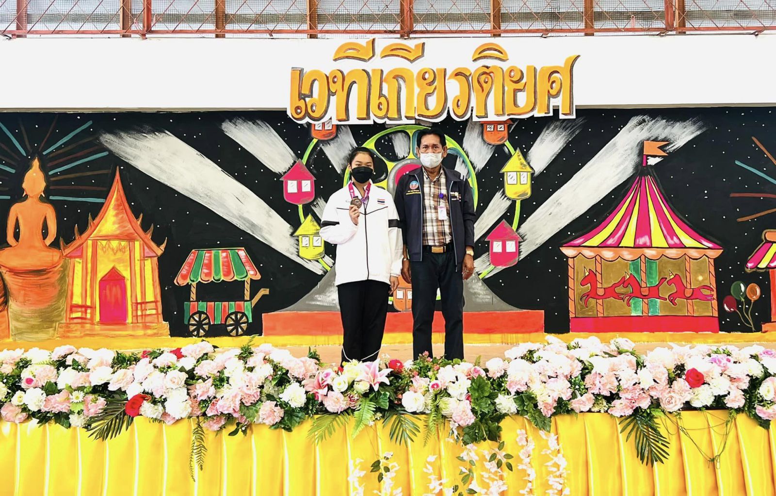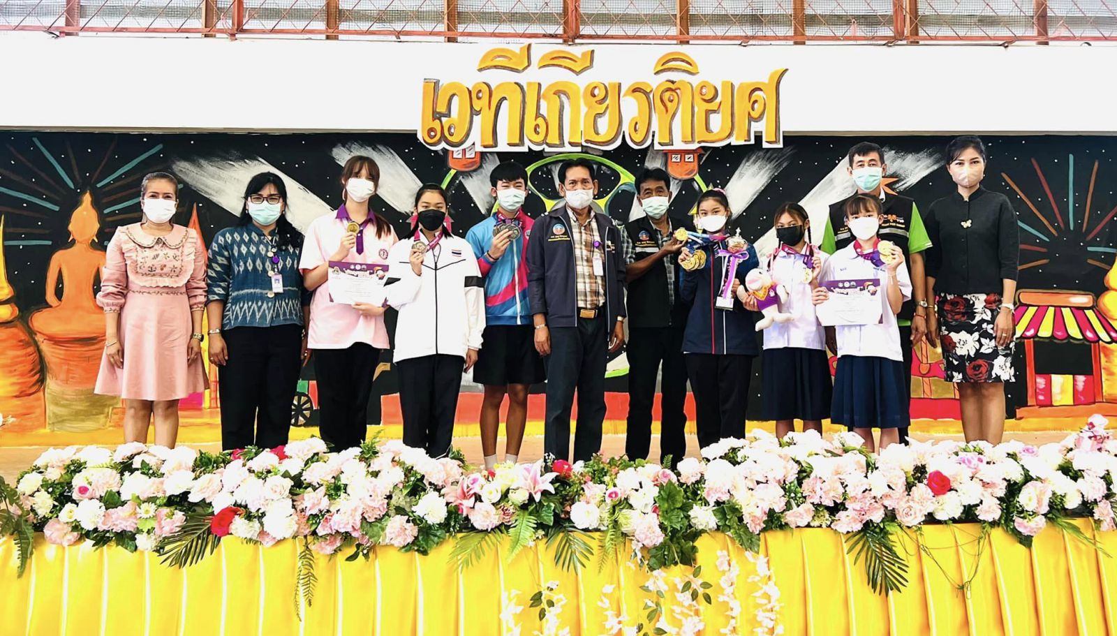 วันที่ 7 กันยายน 2565 นายประสงค์ แสงวิรุณ รองนายกเทศมนตรีนครอ้อมน้อย นายภูมิน ทองใหม่ รองนายกเทศมนตรี นายธีรวุฒิ เจริญนำพาสกุล สมาชิกสภาเทศบาล นางสาววยุลี หมอกไสย ผู้อำนวยการสำนักการศึกษา และนางสาวมยุรี เจริญศิริ ศึกษานิเทศก์ เป็นเกียรติมอบเกียรติบัตรและแสดงความยินดีกับนักกีฬายิมนาสติกลีลา ยิมนาสติกศิลป์และยิมนาสติกแอโรบิก