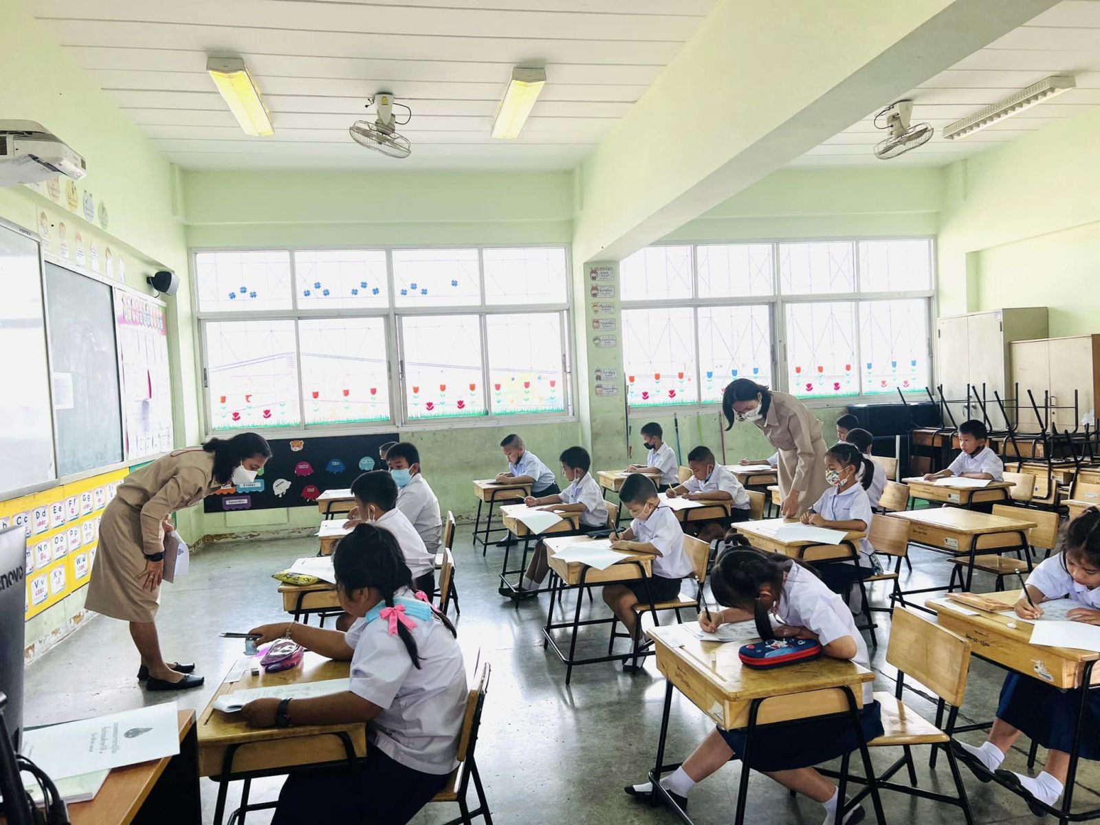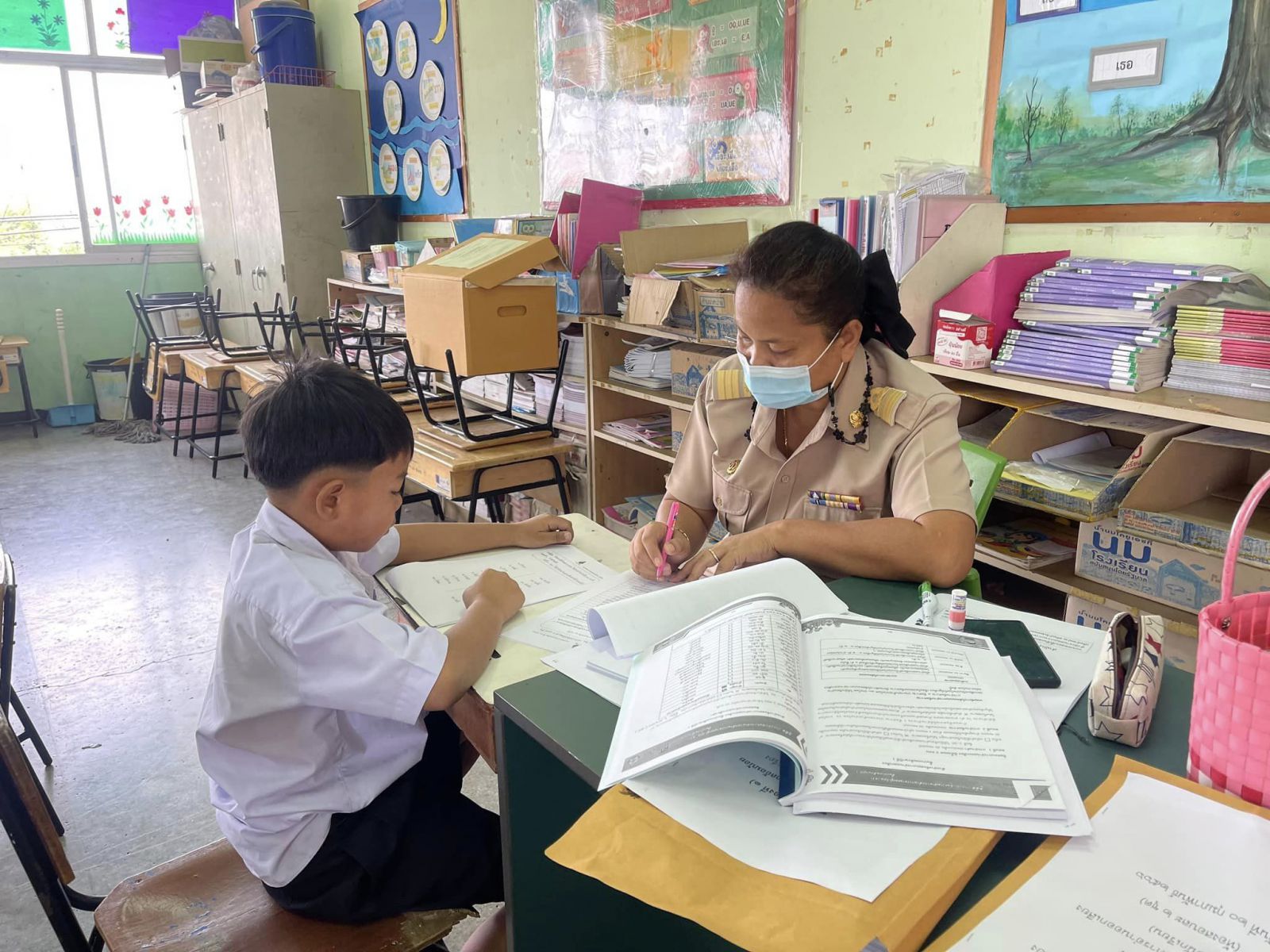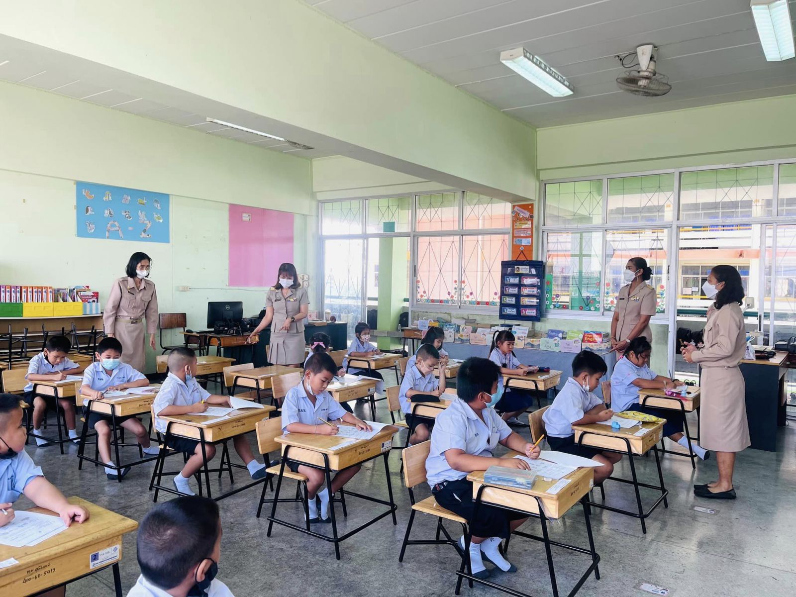 ตรวจเยี่ยมและให้กำลังใจนักเรียนระดับชั้นประถมศึกษาปีที่ 1 โรงเรียนเทศบาลอ้อมน้อย ในการประเมินความสามารถด้านการอ่านของผู้เรียน (Reading Test: RT) ประจำปีการศึกษา 2565