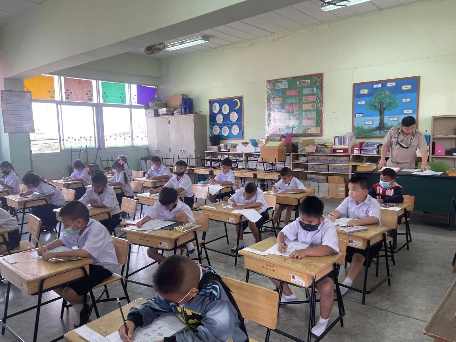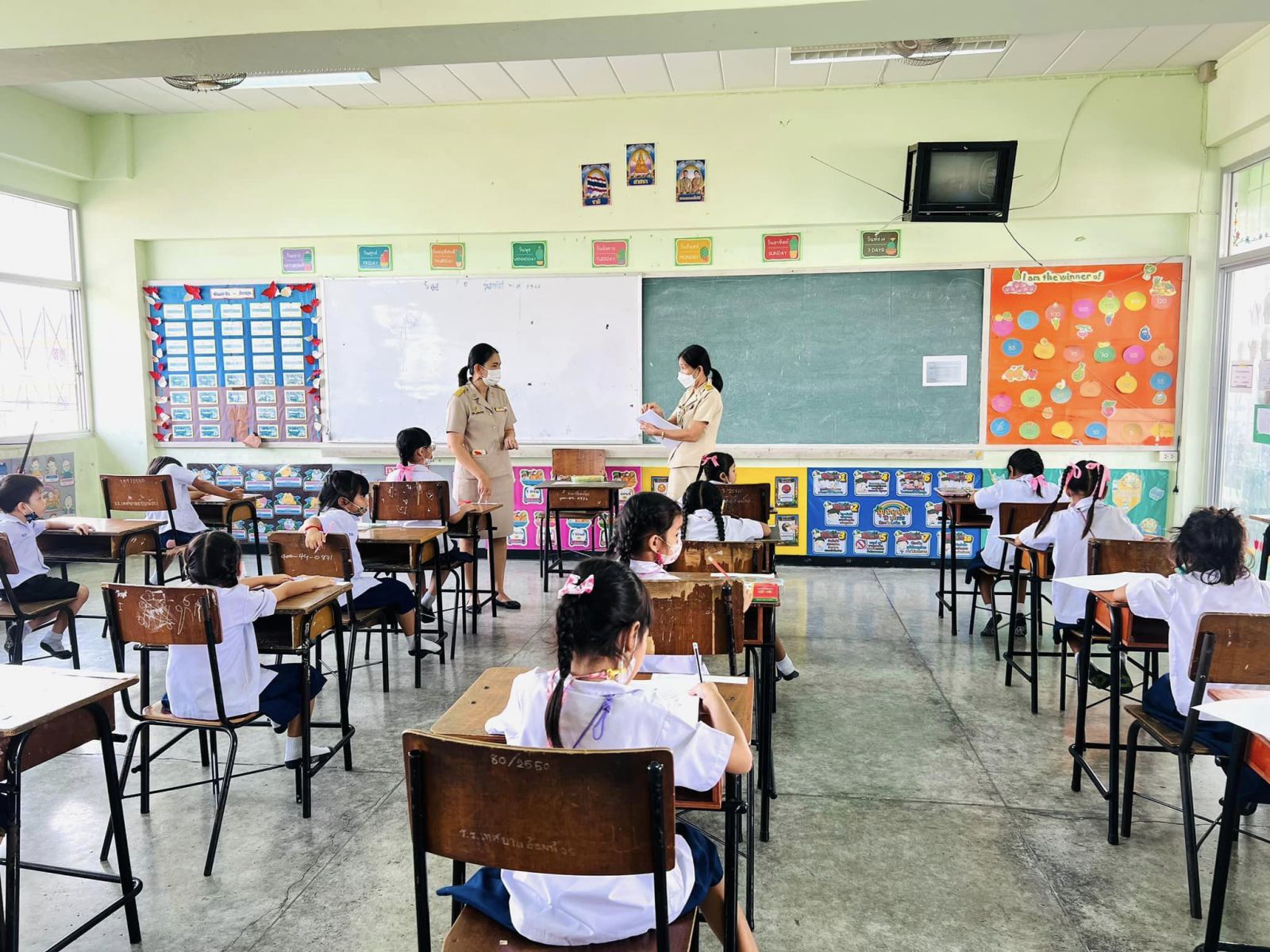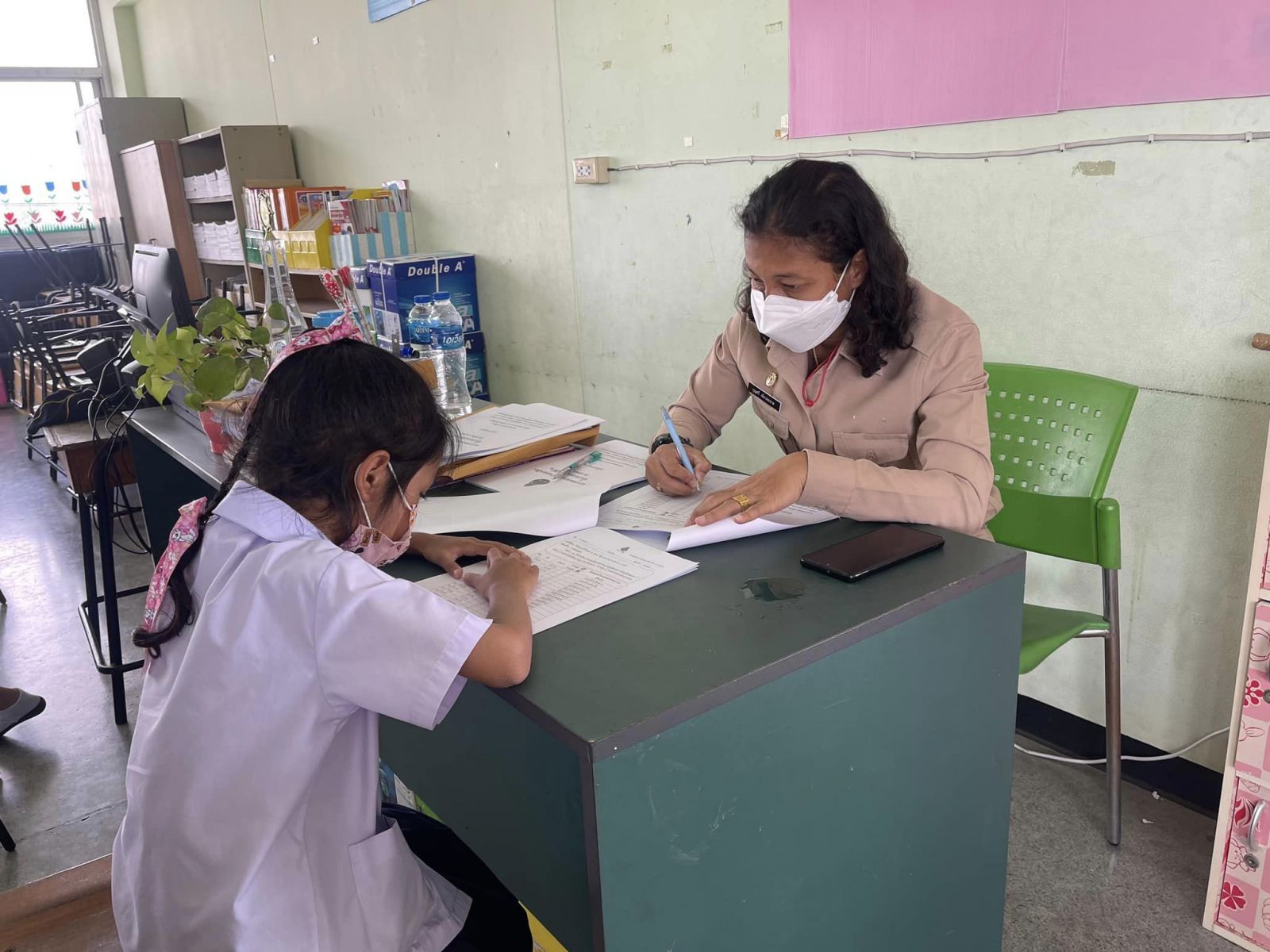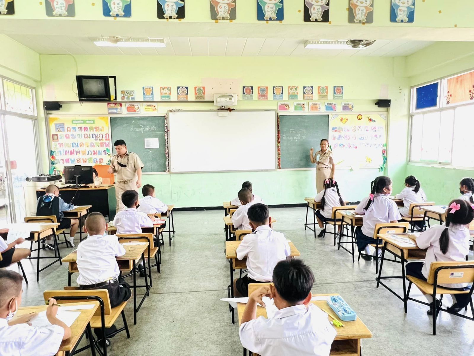 ตรวจเยี่ยมและให้กำลังใจนักเรียนระดับชั้นประถมศึกษาปีที่ 1 โรงเรียนเทศบาลอ้อมน้อย ในการประเมินความสามารถด้านการอ่านของผู้เรียน (Reading Test: RT) ประจำปีการศึกษา 2565