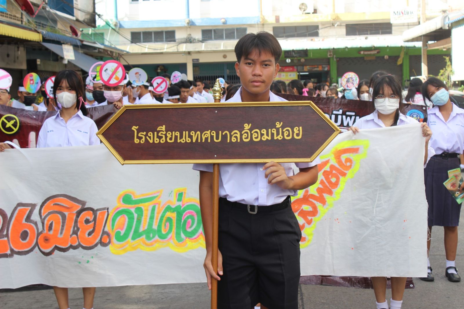 โรงเรียนเทศบาลอ้อมน้อย โดยคณะผู้บริหาร นำนักเรียนระดับชั้นมัธยมศึกษาตอนปลาย เดินขบวนรณรงค์ต่อต้านยาเสพติด ณ บริเวณตลาดอ้อมน้อย เพื่อรณรงค์และประชาสัมพันธ์เกี่ยวกับยาเสพติด และภัยของยาเสพติด เพื่อปกป้องลูกหลานให้ห่างไกลจากยาเสพติด เมื่อวันที่ 26 มิถุนายน 2566 โดยมี ท่านนายกเทศมนตรี บุญชู นิลถนอม คณะผู้บริหารเทศบาลนครอ้อมน้อย คณะผู้บริหารสำนักการศึกษา ร่วมเดินขบวนในครั้งนี้ด้วย