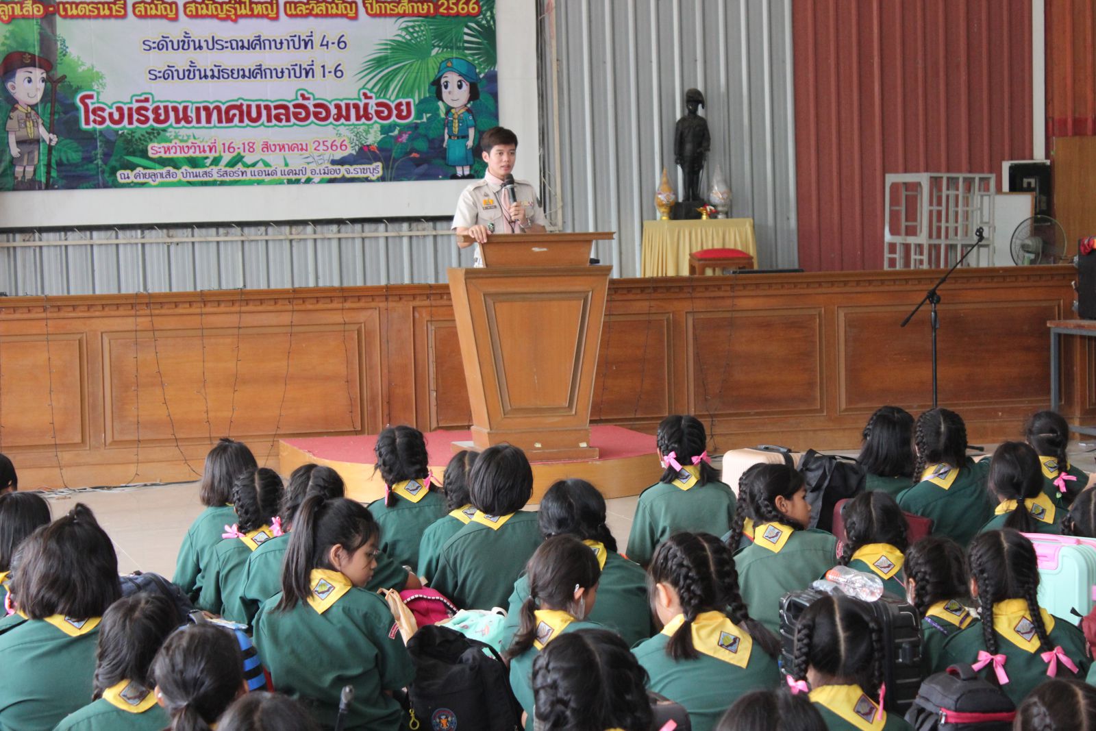 โรงเรียนเทศบาลอ้อมน้อยจัดโครงการเข้าค่ายพักแรม ลูกเลือ-เนตรนารี สามัญ สามัญรุ่นใหญ่ และวิสามัญ ณ ค่ายลูกเสือบ้านเสธ์ จ.ราชบุรี โดยมีนักเรียนระดับประถมศึกษา ปีที่ 4-6 และมัธยมศึกษา ปีที่ 1-6 ระหว่างวันที่ 16-18 สิงหาคม 2566 เพื่อให้นักเรียนมีความรู้และความเข้าใจในวิชาลูกเสือ ที่มีพื้นฐานของความสามัคคี ความอดทน กล้าแสดงออก และมีจิตสาธารณะต่อส่วนรวม ผ่านกิจกรรมการฝึกลูกเสือในทุกๆด้าน และเป็นเยาวชนที่มีคุณภาพต่อสังคมประเทศชาติ ในการนี้ได้มี นางสาวบุษยพรรณ์ แสงไชยพัฒน์ ผู้อำนวยการสถานศึกษา เป็นประธานและผู้อำนวยการฝึก และมีคณะคุณครูที่ร่วมเดินทางไปดูแลความเรียบร้อย