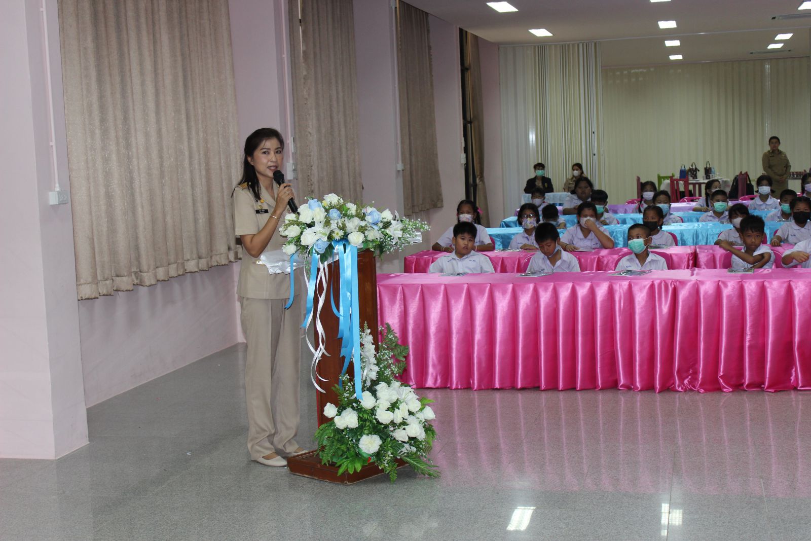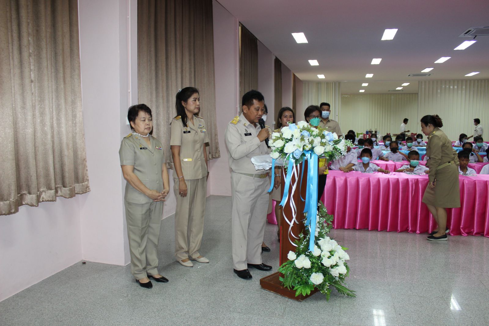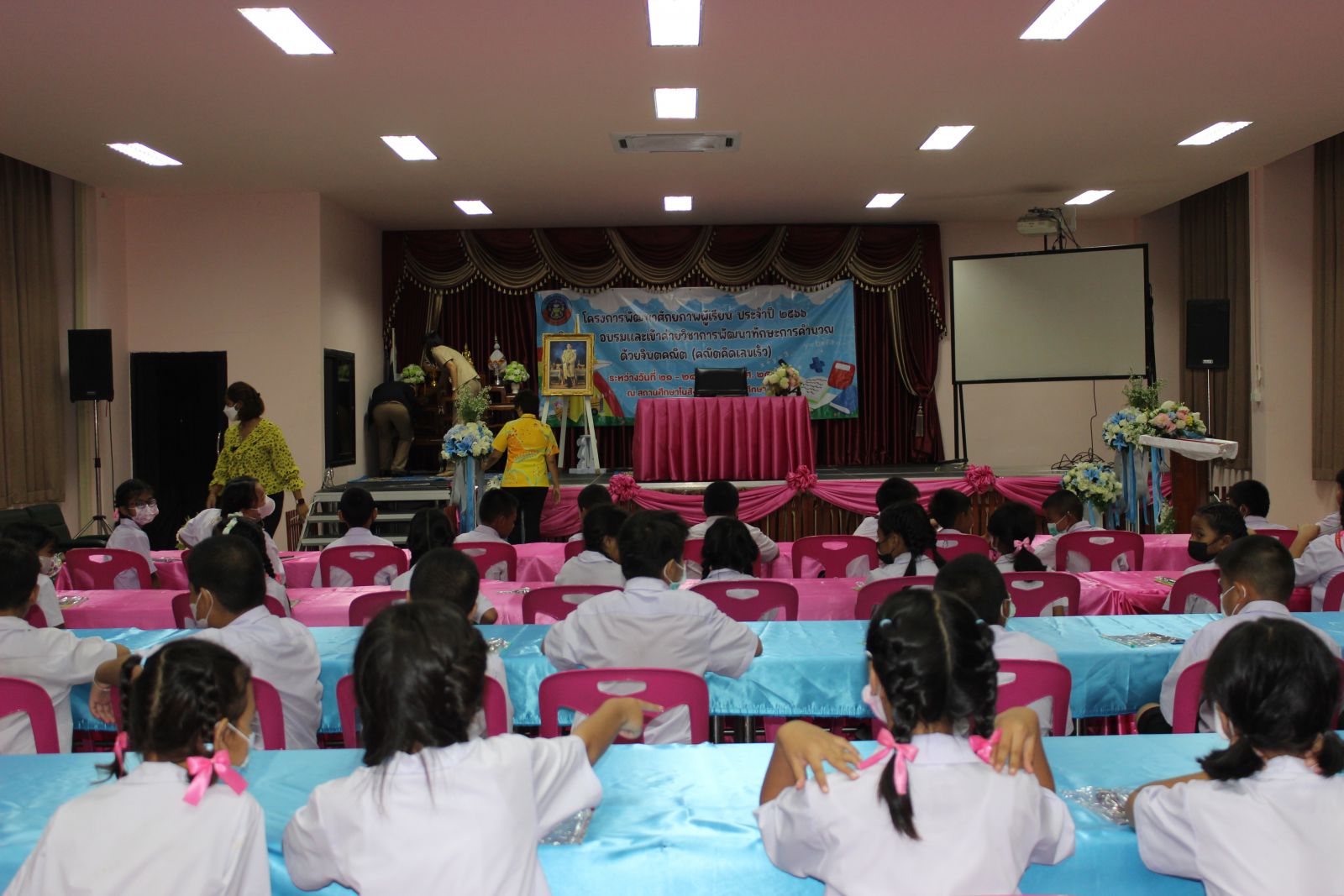 วันจันทร์ที่ 21 สิงหาคม 2566 สำนักการศึกษา เทศบาลนครอ้อมน้อย จัดโครงการพัฒนาศักยภาพผู้เรียน ประจำปี 2566 อบรมและเข้าค่ายวิชาการพัฒนาทักษะการคำนวณด้วยจินตคณิต (คณิตคิดเลขเร็ว) โดยมี นายศุภกร เบญจกัญญา ปลัดเทศบาลนครอ้อมน้อย กล่าวรายงานวัตถุประสงค์ของการจัดโครงการฯ และ นายบุญชู นิลถนอม นายกเทศมนตรีนครอ้อมน้อย ให้เกียรติเป็นประธานในพิธีเปิดโครงการ
