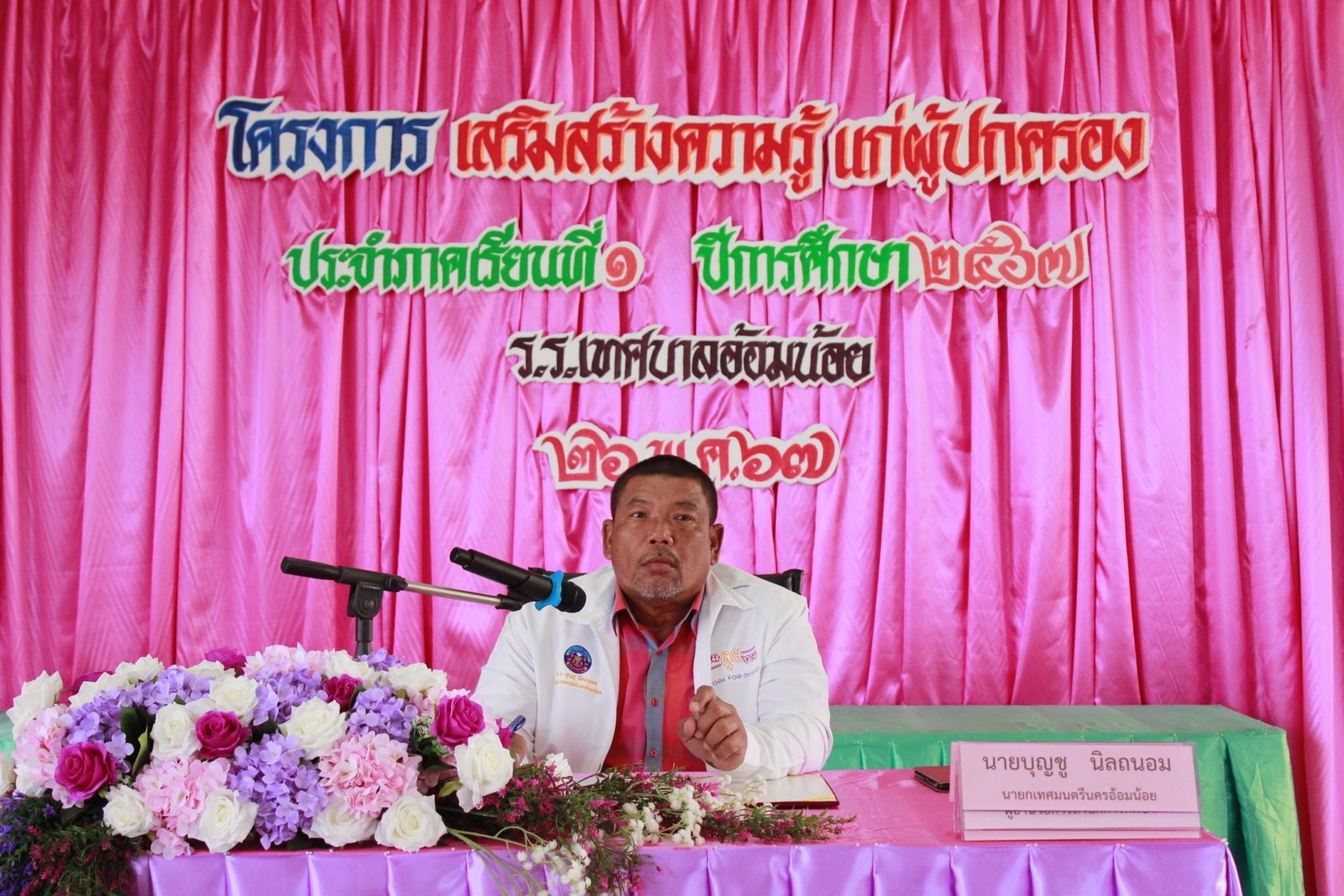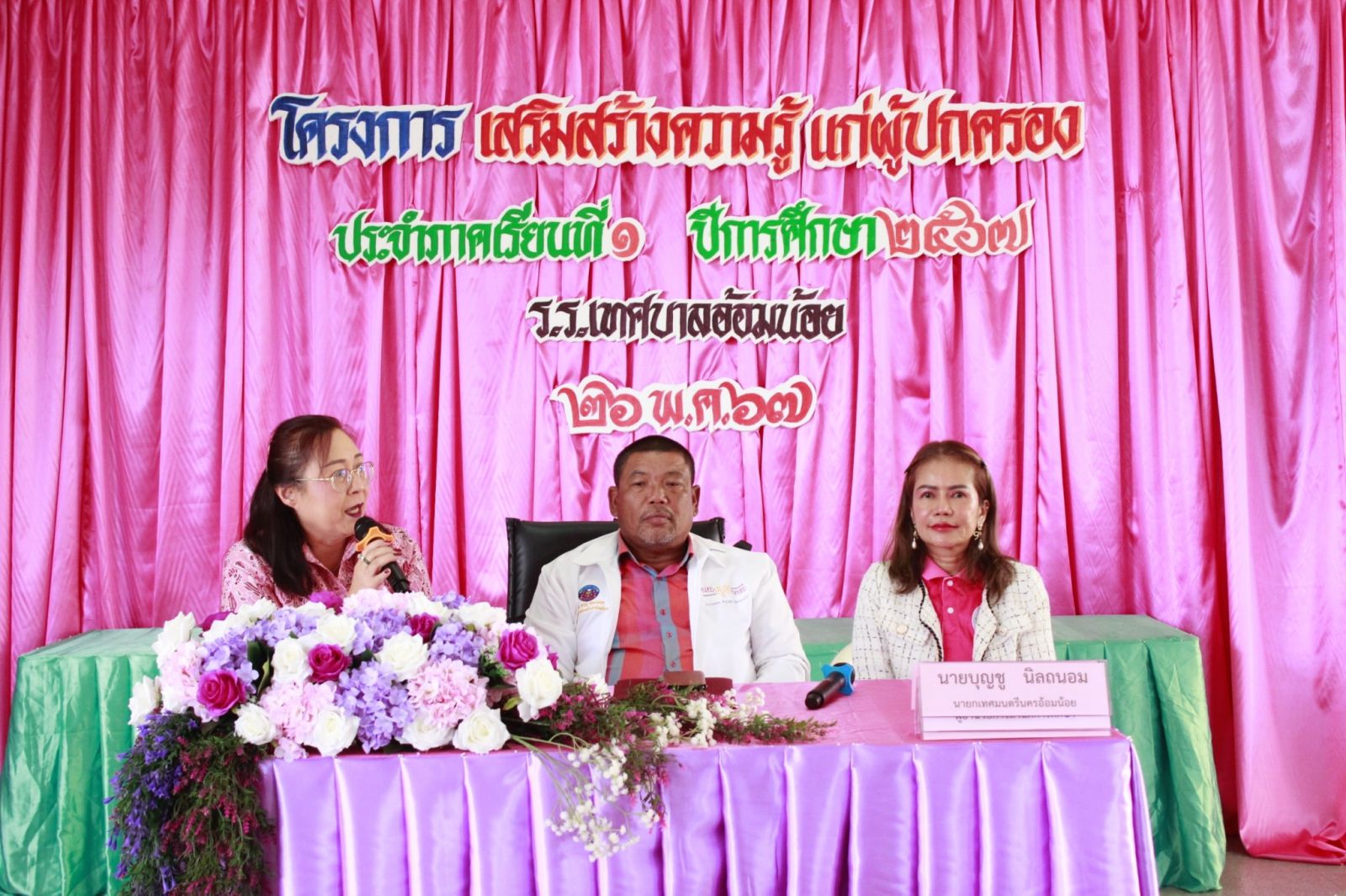 โรงเรียนเทศบาลอ้อมน้อย นำโดย นายบุญชู นิลถนอม นายกเทศมนตรีนครอ้อมน้อย พร้อมทั้งคณะผู้บริหารเทศบาลนครอ้อมน้อย นางสาวสุวรรณา วัชรอาภาไพบูลย์ ผู้อำนวยการสำนักการศึกษา เทศบาลนครอ้อมน้อย นางสาวบุษยพรรณ์ เเสงไชยพัฒน์ ผู้อำนวยการโรงเรียนเทศบาลอ้อมน้อย พร้อมทั้งคณะครูและบุคลากร จัดโครงการส่งเสริมความรู้เเก่ผู้ปกครอง ประจำภาคเรียนที่ 1 ปีการศึกษา 2567 เพื่อแนะนำข้อมูลทั่วไปของโรงเรียน การบริหารการศึกษาของโรงเรียน งานวิชาการ และงานปกครองเพื่อทำความเข้าใจ สร้างความเชื่อมั่นให้กับผู้ปกครอง เเละเเลกเปลี่ยนความคิด เพื่อช่วยในการจัดการเรียนการสอนให้เป็นไปอย่างมีประสิทธิภาพ