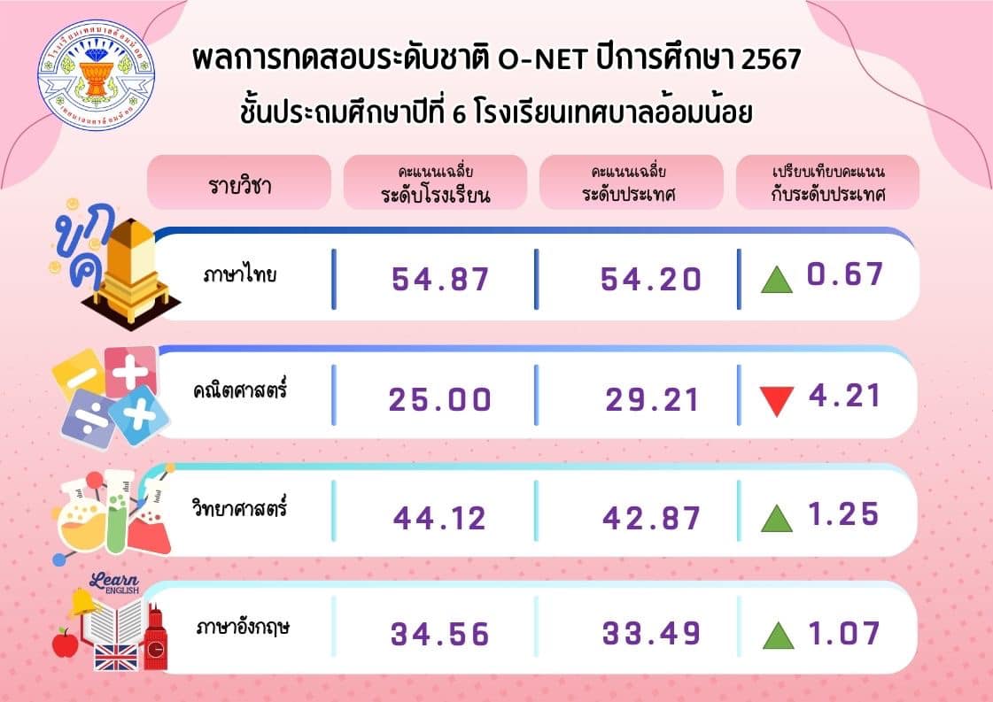 ที่มีผลการทดสอบทางการศึกษาระดับชาติขั้นพื้นฐาน (O-NET)