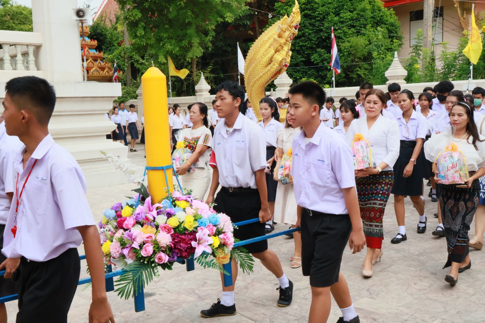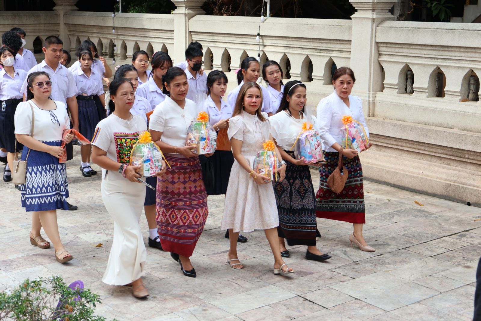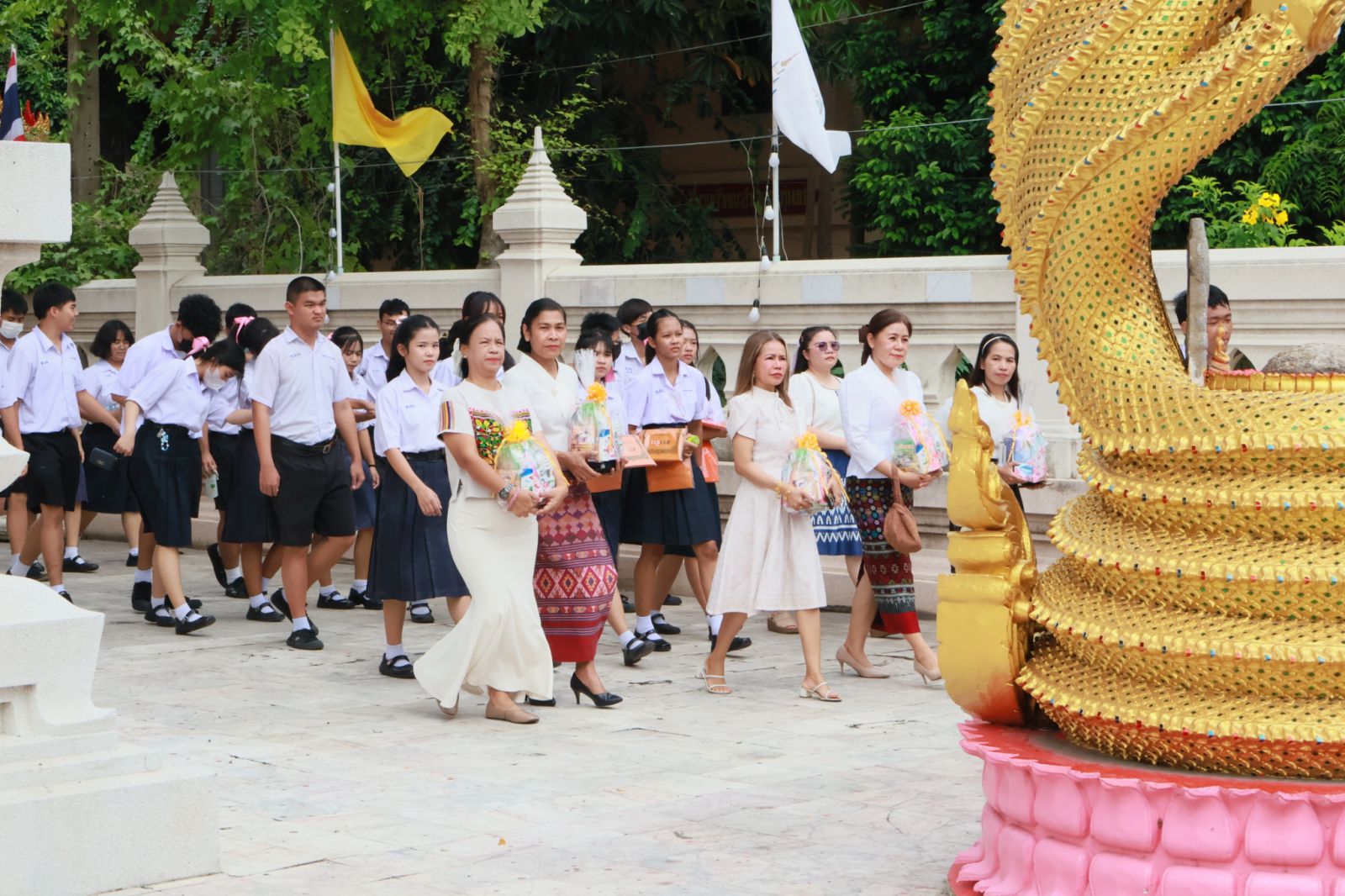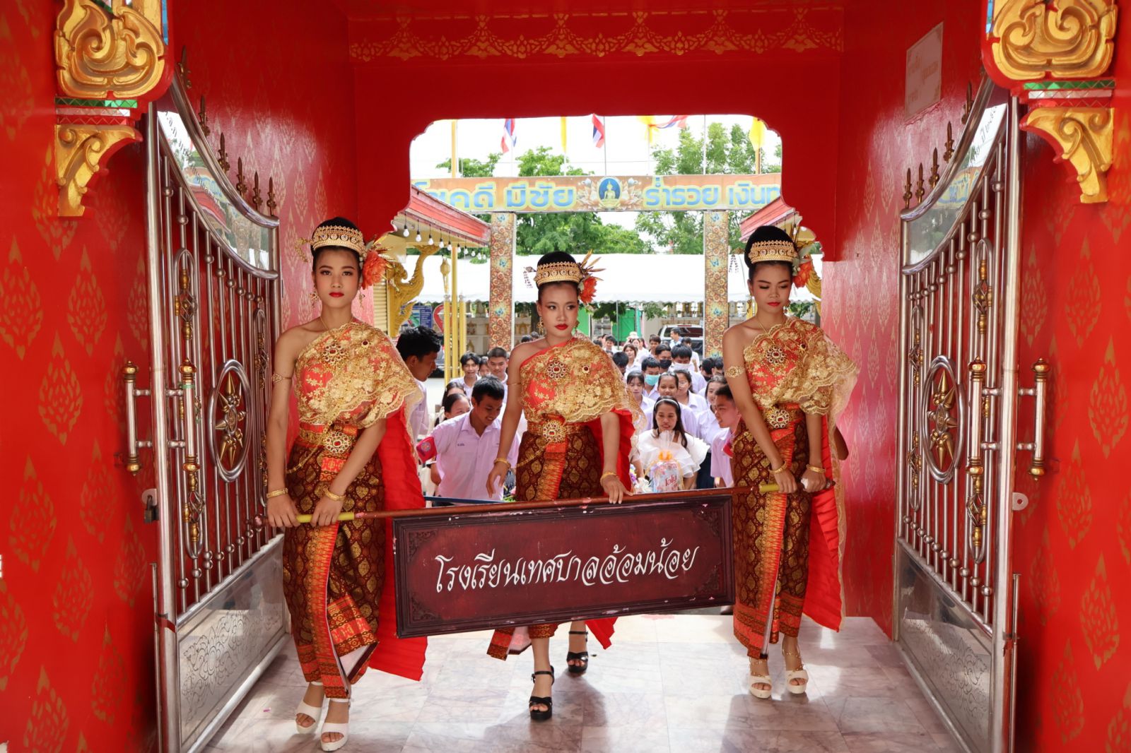 โดยมี นางสาวบุษยพรรณ์ แสงไชยพัฒน์ ผู้อำนวยการสถานศึกษาโรงเรียนเทศบาลอ้อมน้อย เป็นประธานในพิธี เพื่อนำไปถวาย ณ วัดอ้อมน้อย และ วัดศรีสำราญฯ