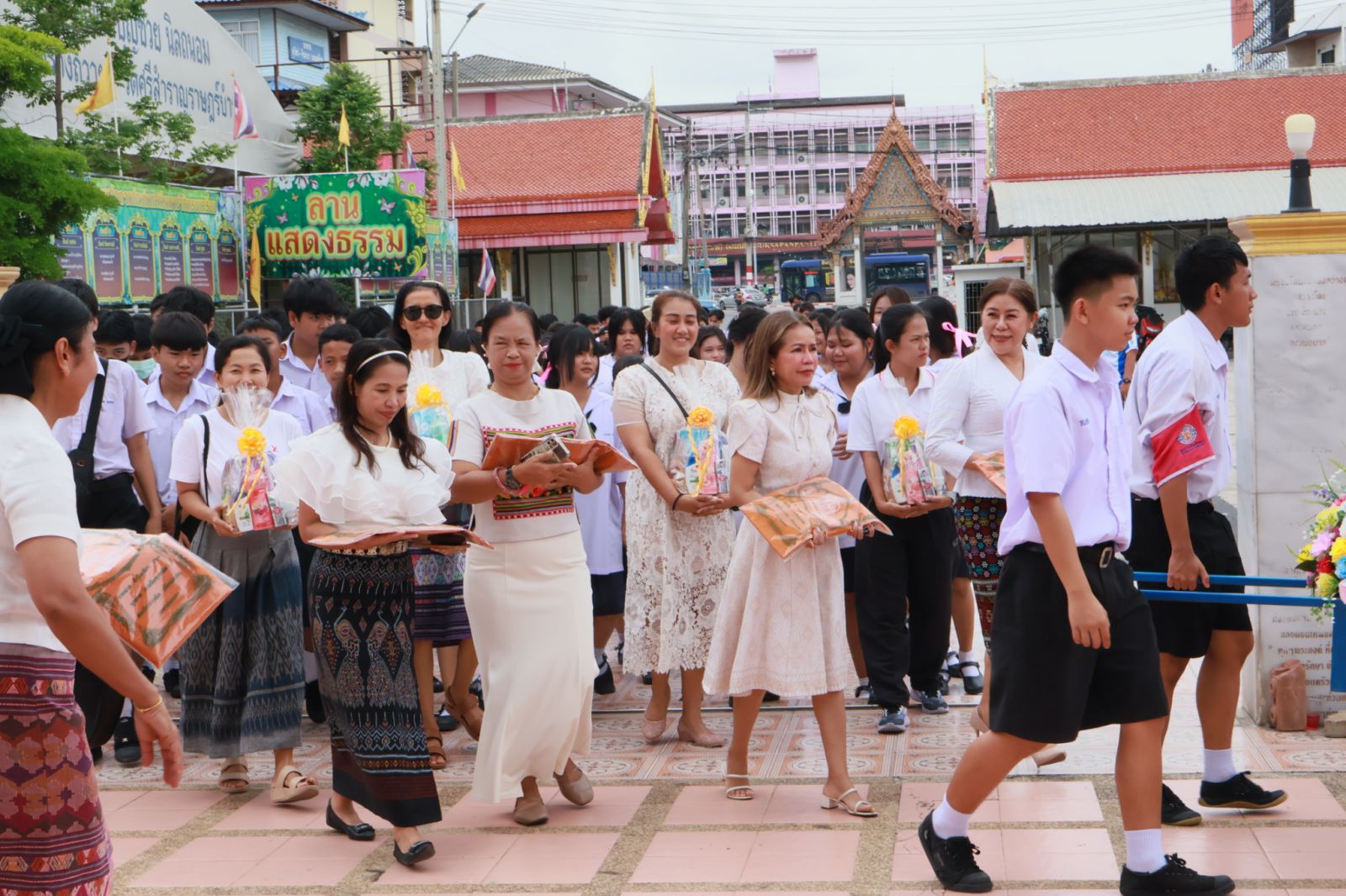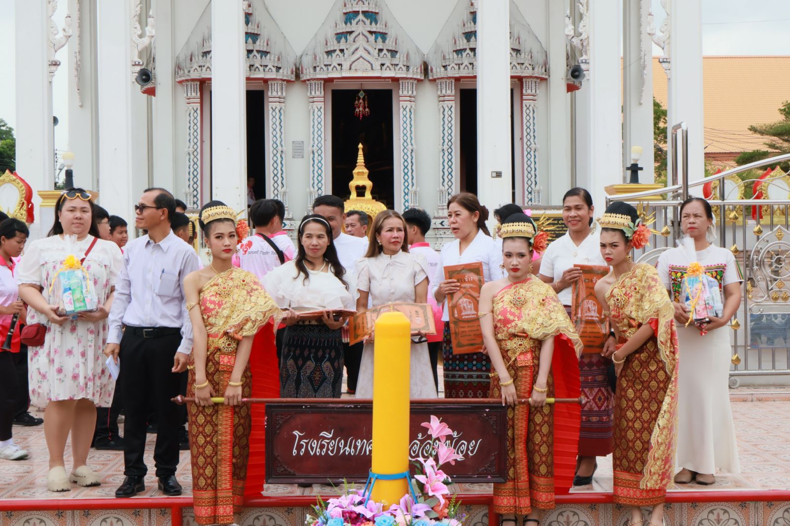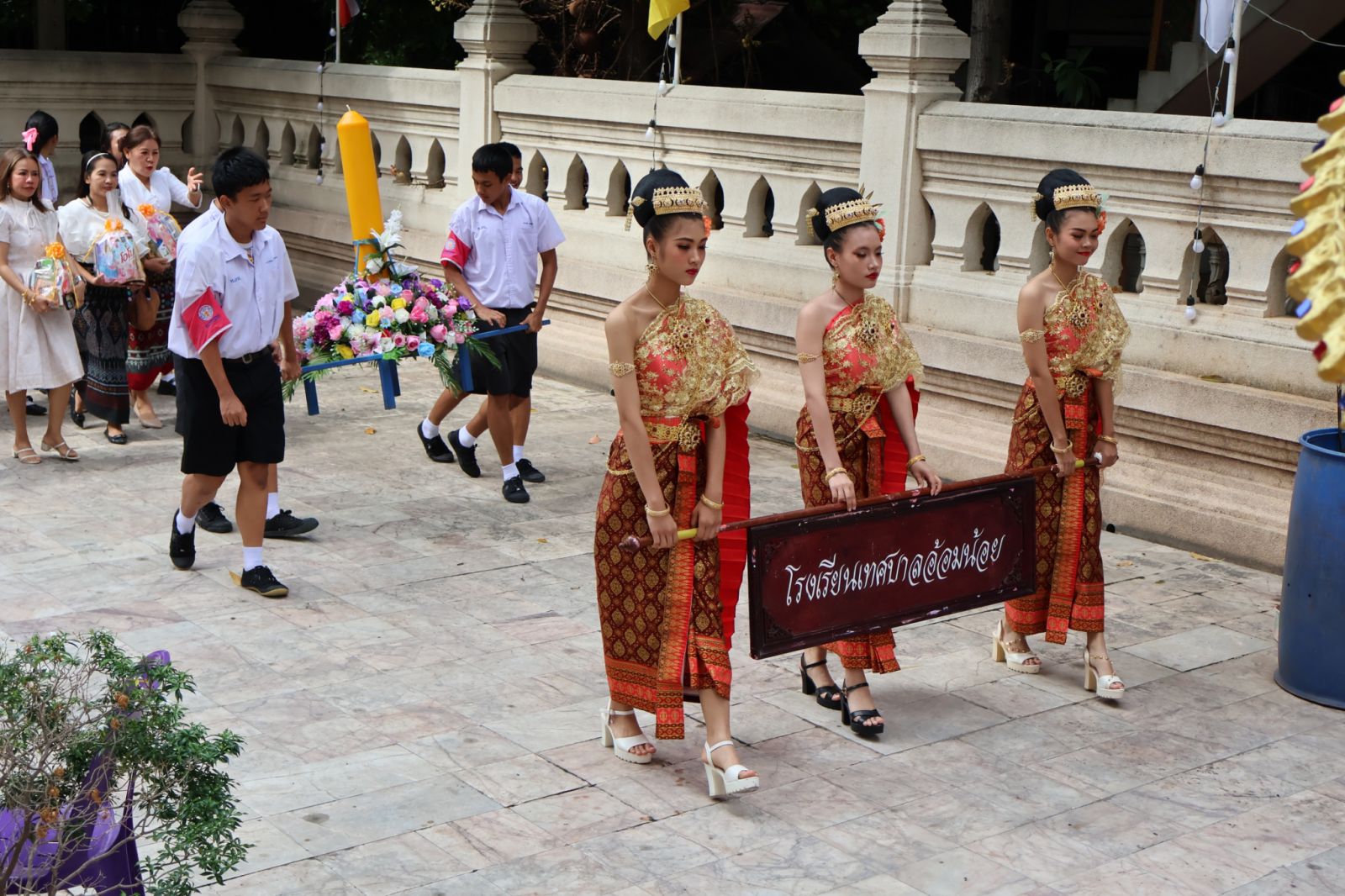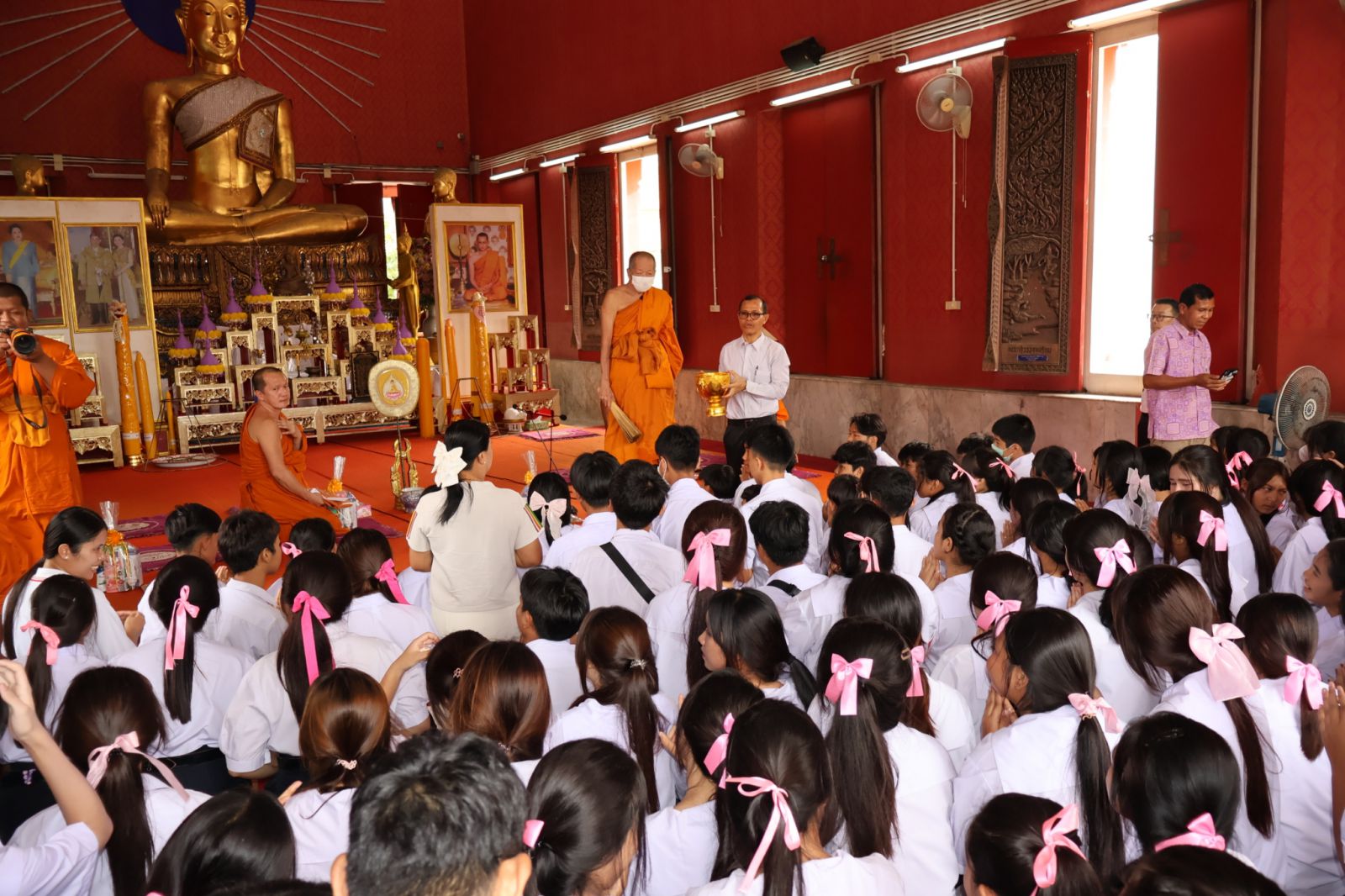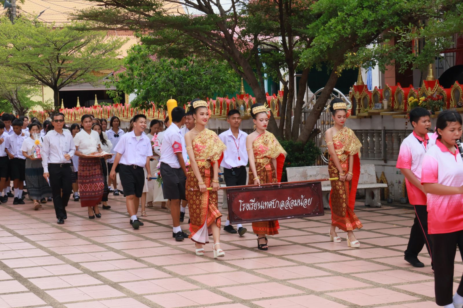 โดยมี นางสาวบุษยพรรณ์ แสงไชยพัฒน์ ผู้อำนวยการสถานศึกษาโรงเรียนเทศบาลอ้อมน้อย เป็นประธานในพิธี เพื่อนำไปถวาย ณ วัดอ้อมน้อย และ วัดศรีสำราญฯ