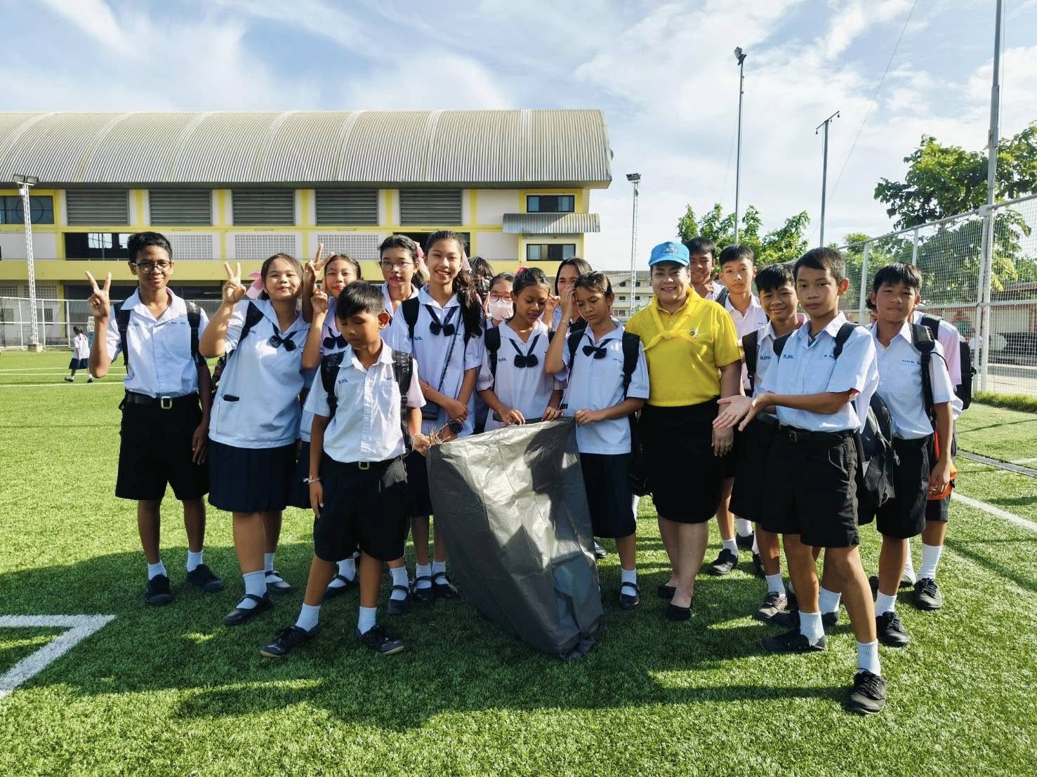 นางสาวบุษยพรรณ์ แสงไชยพัฒน์ ผู้อำนวยการสถานศึกษา รองผู้อำนวยการ คณะครู และนักเรียนร่วมกิจกรรมในโอกาสวันเฉลิมพระชนมพรรษา พระบาทสมเด็จพระวชิรเกล้าเจ้าอยู่หัว และทำกิจกรรมจิตอาสาเก็บขยะบริเวณโดยรอบโรงเรียน