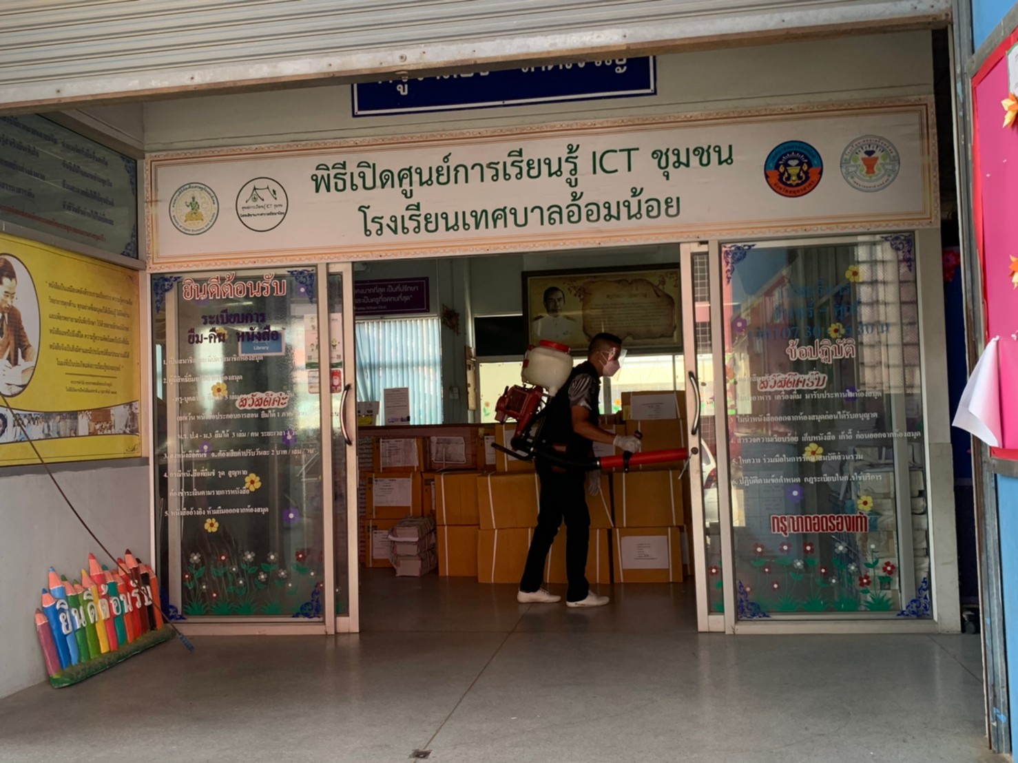 คณะผู้บริหารโรงเรียนเทศบาลอ้อมน้อย ขอขอบพระคุณเจ้าหน้าที่เทศบาลนครอ้อมน้อย ที่มาฉีดพ่นยาฆ่าเชื้อภายในบริเวณโรงเรียนเทศบาลอ้อมน้อย
