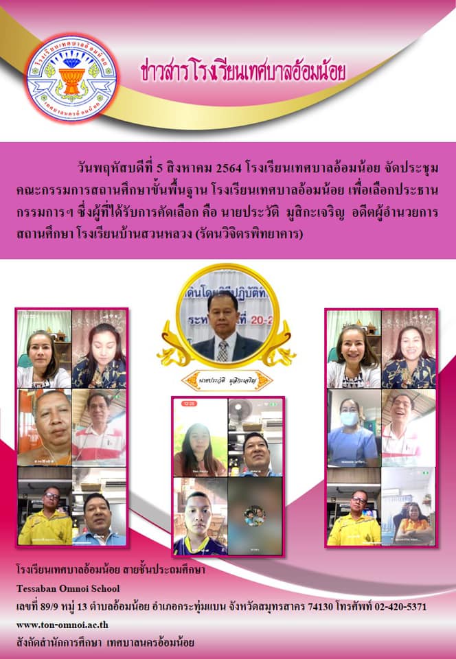 วันพฤหัสบดีที่ 5 สิงหาคม 2564 โรงเรียนเทศบาลอ้อมน้อย จัดประชุมคณะกรรมการสถานศึกษาขั้นพื้นฐาน โรงเรียนเทศบาลอ้อมน้อย