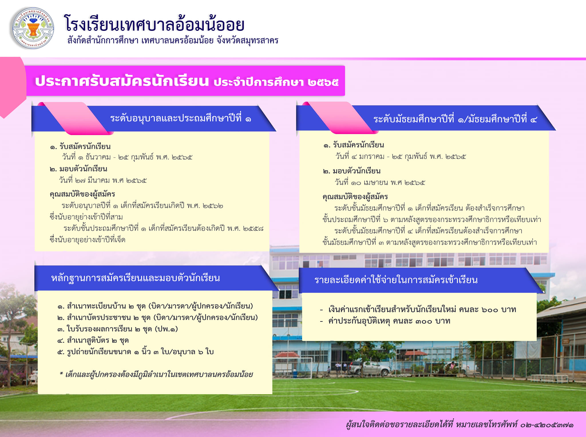 โรงเรียนเทศบาลอ้อมน้อย รับสมัครนักเรียนประจำปีการศึกษา 2565